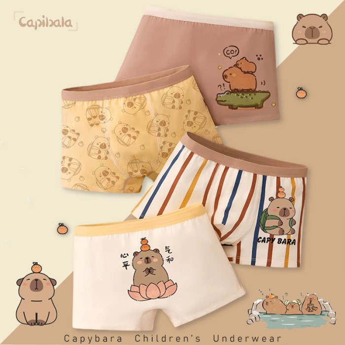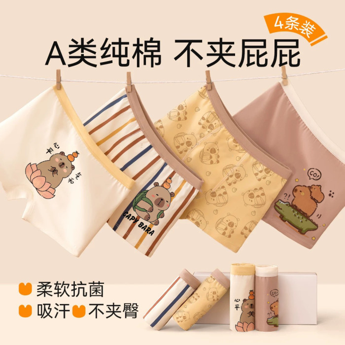 兒童內褲男童純棉a類卡皮巴拉2025款男孩全棉四角青少年平角短褲