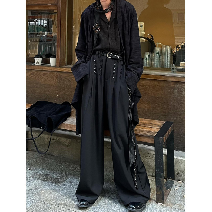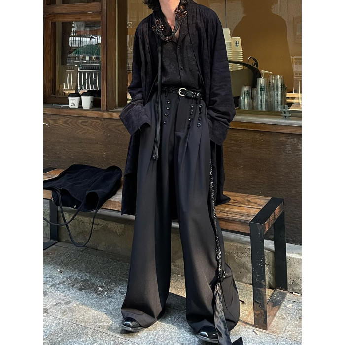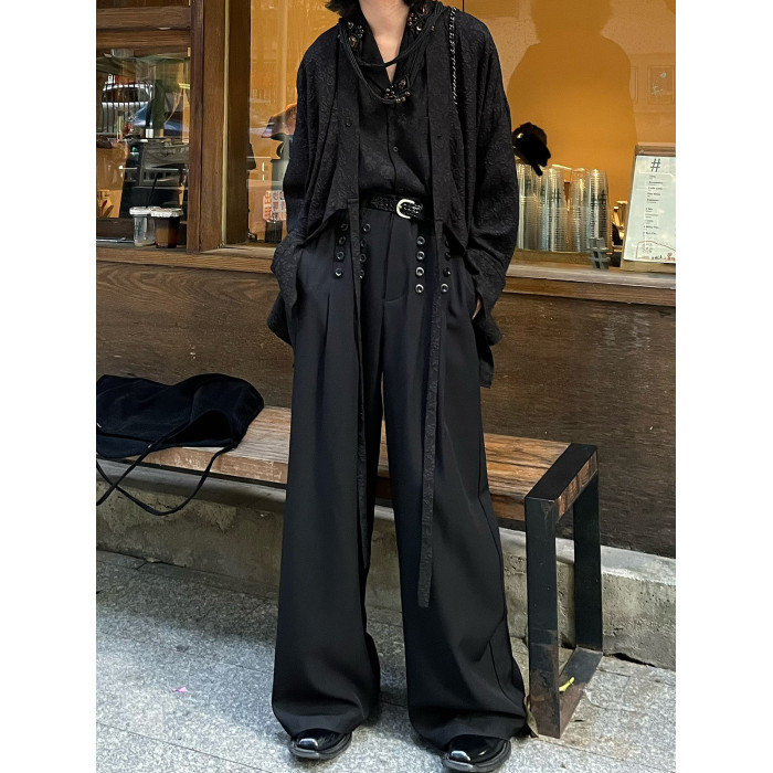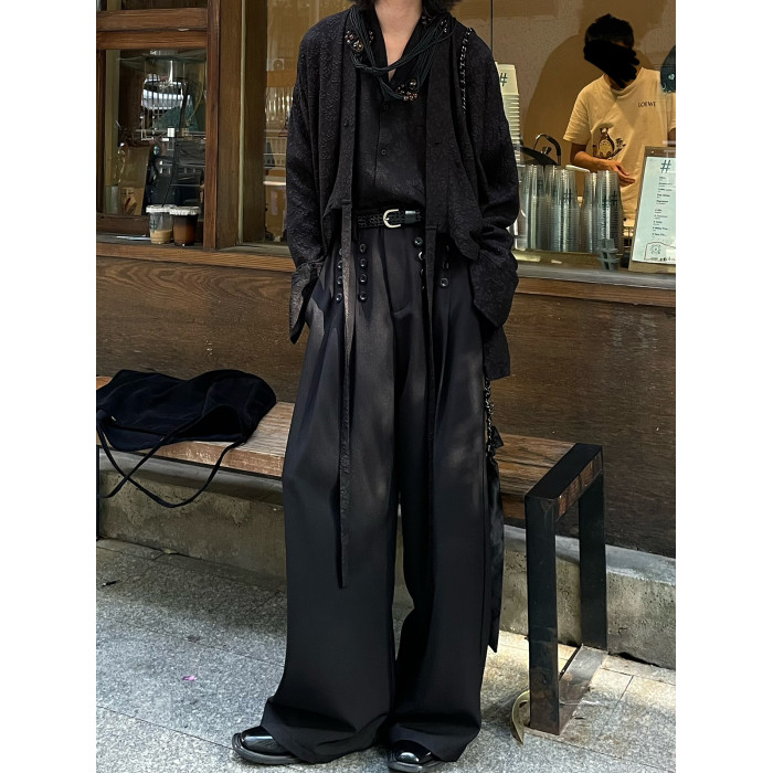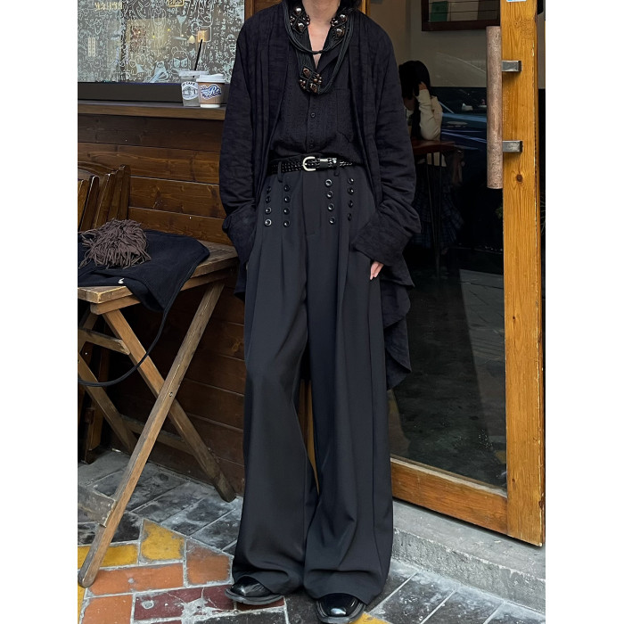 以休眠 復古日系紐釦設計山本耀司風垂墜感濶腿褲拖地堆曡西褲