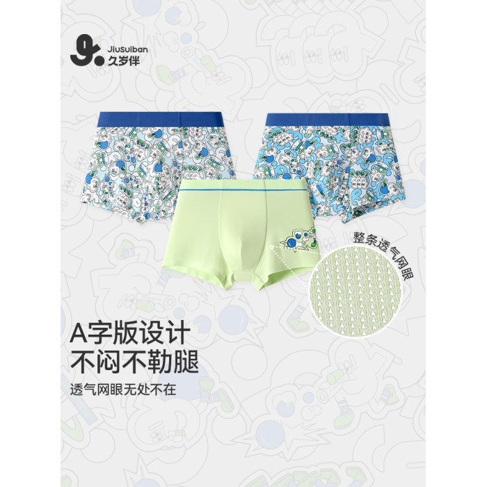 久嵗伴兒童內褲男童蠶絲輕薄透氣平角四角褲不夾屁屁寶寶夏季薄款