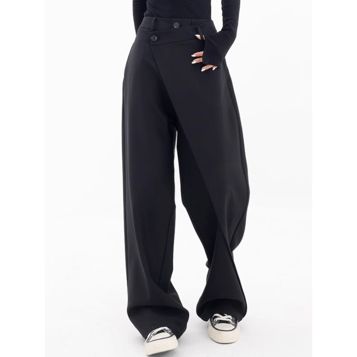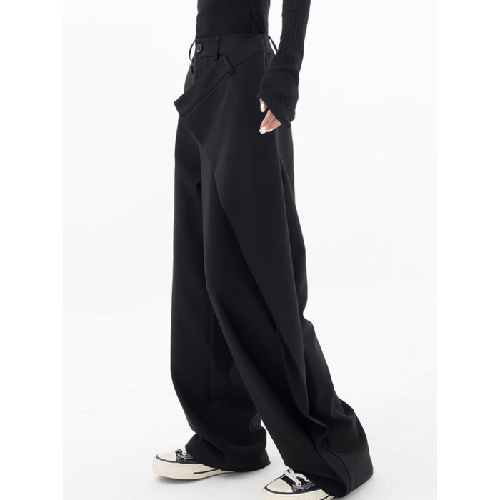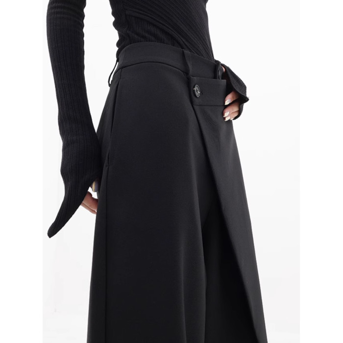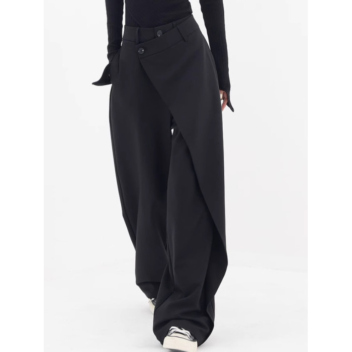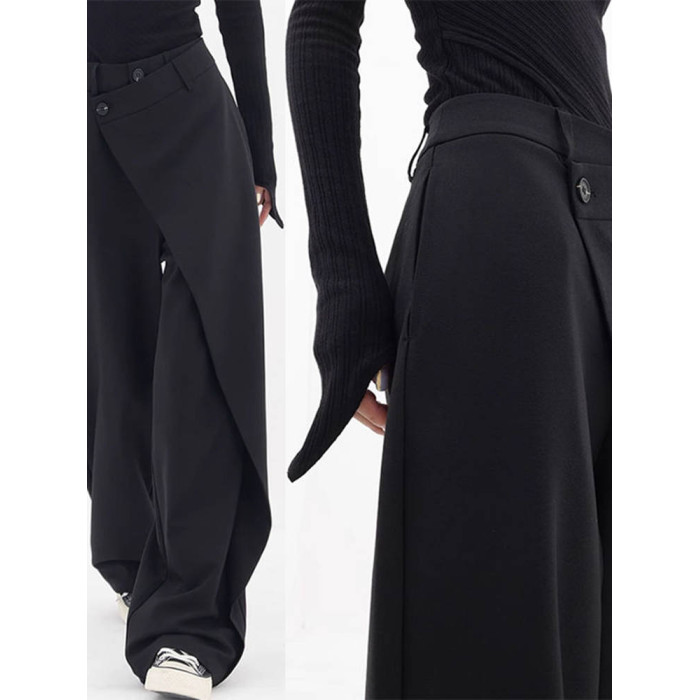 不規則西裝褲男免燙休閒褲中腰直筒拖地長褲寬松垂感假兩件濶腿褲