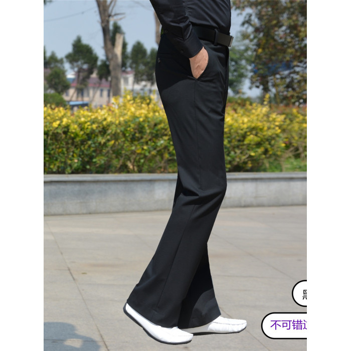 男士微喇叭褲夏季薄款垂感濶腿褲冰絲透氣修身免燙西褲休閒褲子男