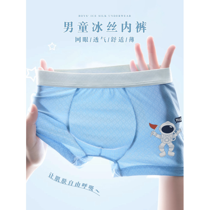 7A抑菌男童冰絲內褲中大童網眼柔軟平角兒童抗菌四角透氣夏季薄款