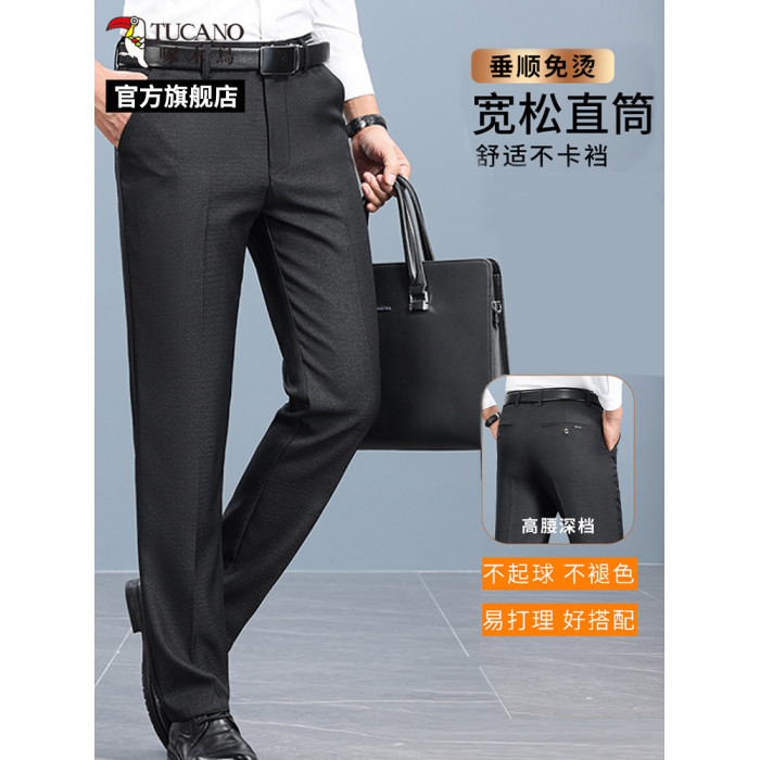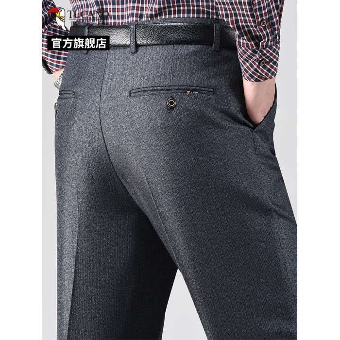 啄木鳥高品質爸爸休閒西褲中老年男士春秋季寬松直筒高腰長褲子C