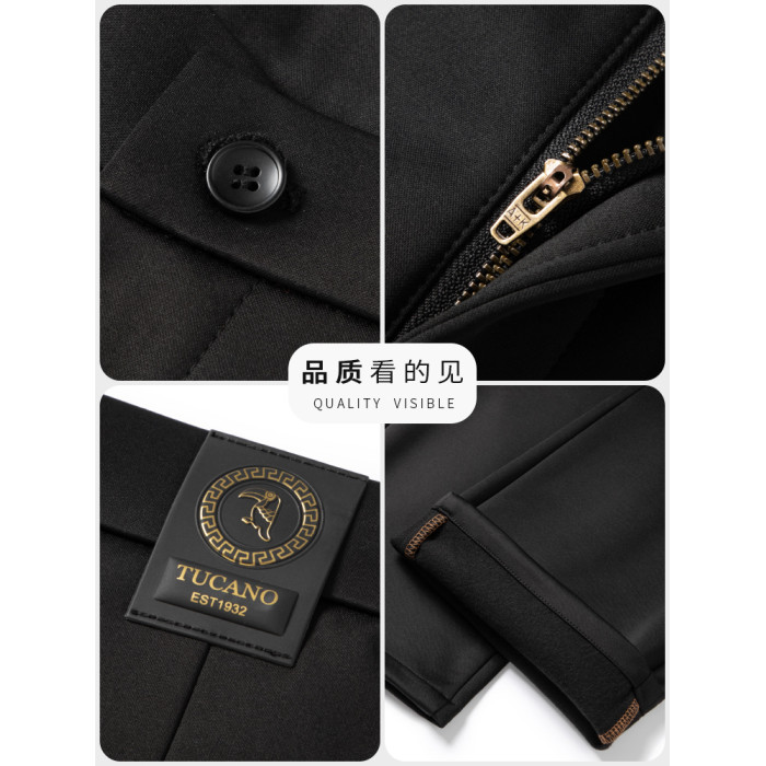 啄木鳥中老年爸爸褲子男士秋季新款休閒褲直筒寬松雙褶商務西褲