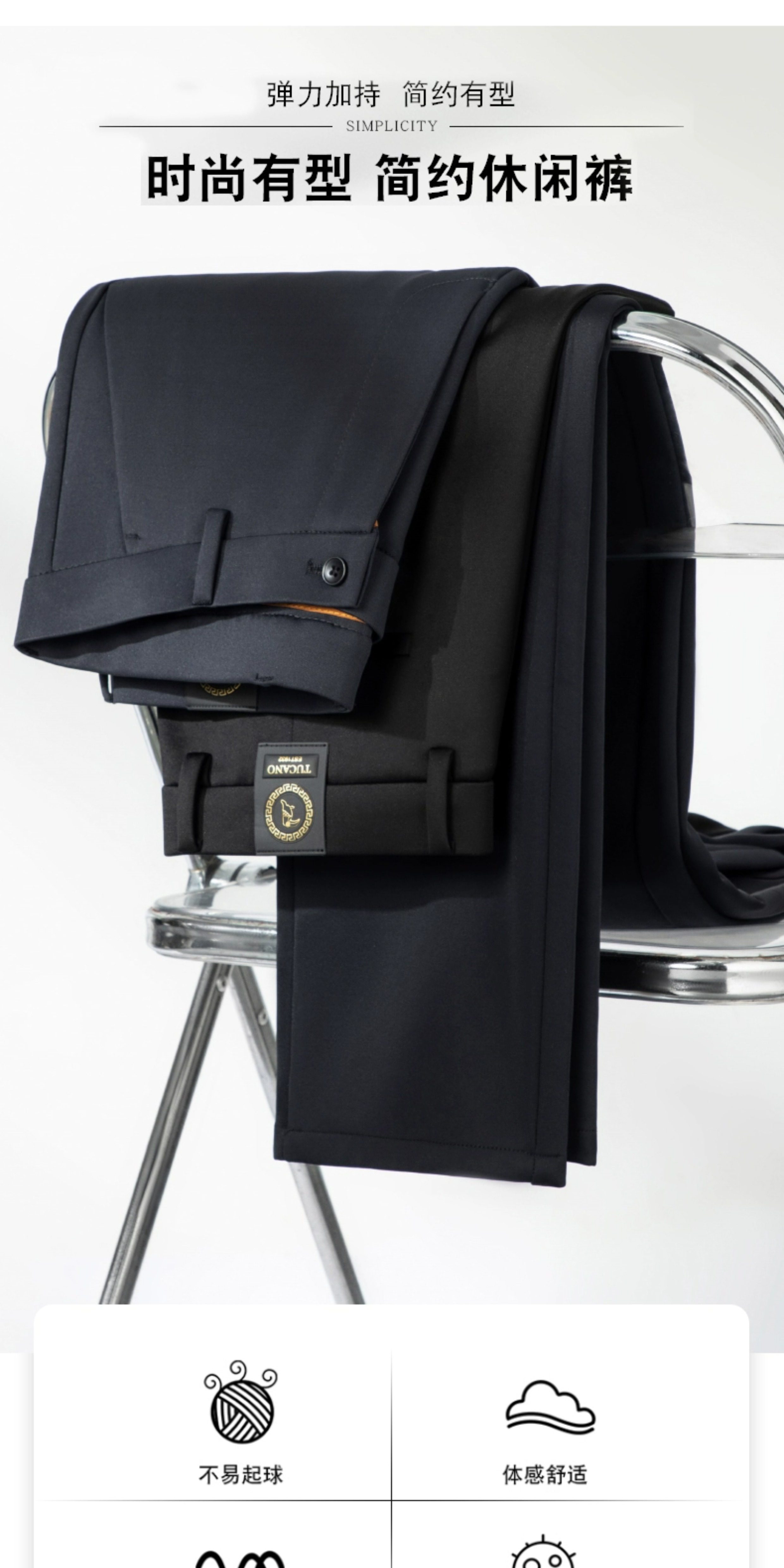 啄木鳥中老年爸爸褲子男士秋季新款休閒褲直筒寬鬆雙褶商務西褲