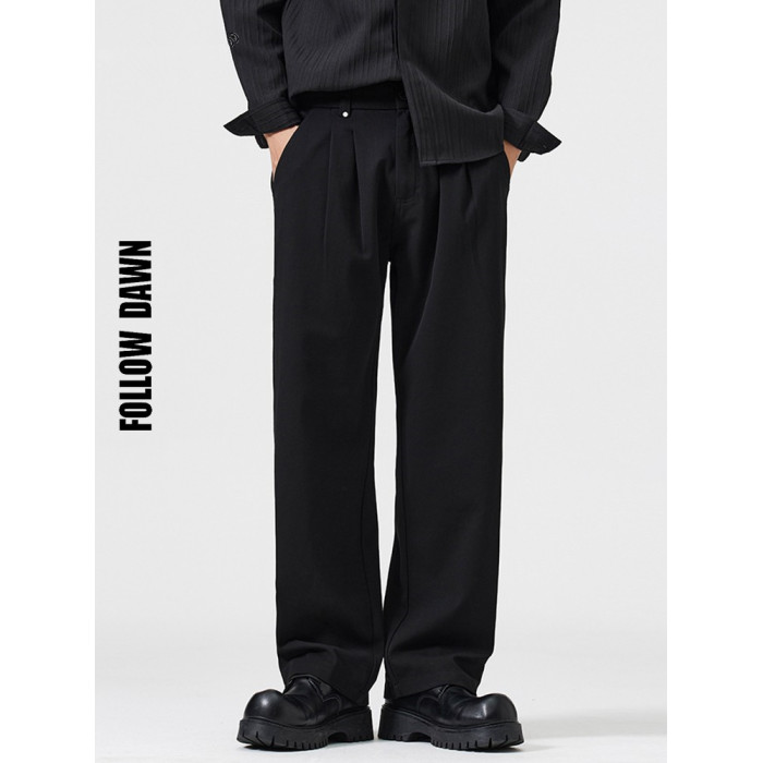高級感直筒休閒褲男士2025春秋季新款韓版潮流百搭寬松垂感小西褲