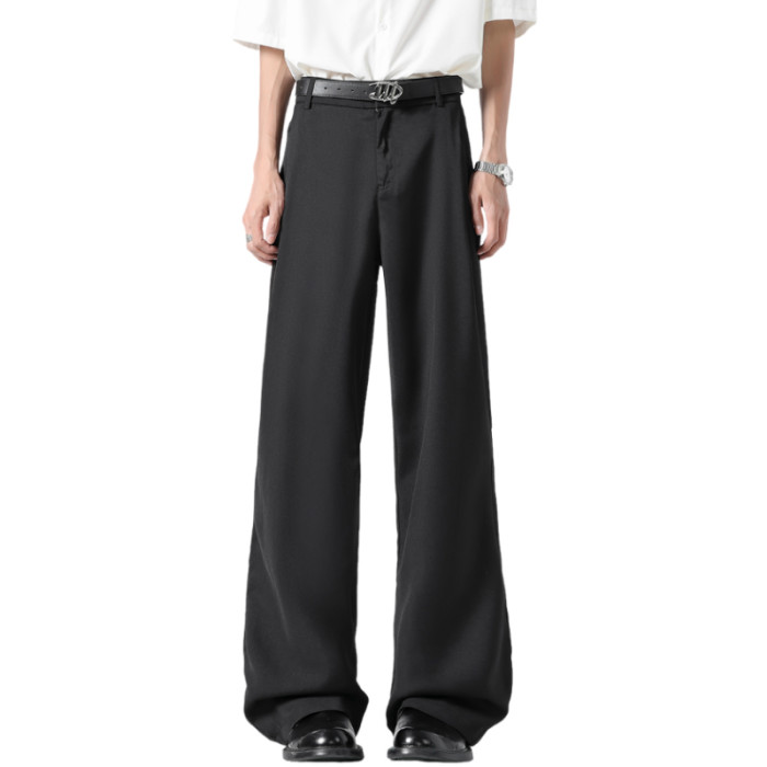 WASSUP NURAYA三本針黑色垂感休閒西褲男夏季寬松直筒褲西裝褲子
