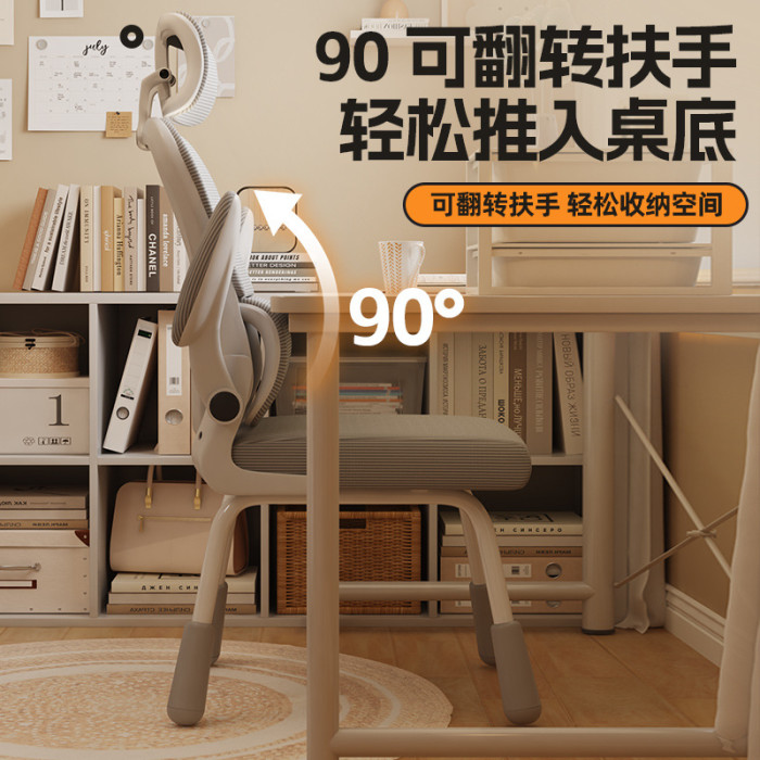 90°繙轉扶手【黑框灰網白架】頭枕+加厚海綿墊+懸浮腰托