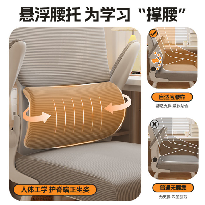 90°繙轉扶手【黑框灰網白架】透氣舒適乳膠墊+懸浮腰托