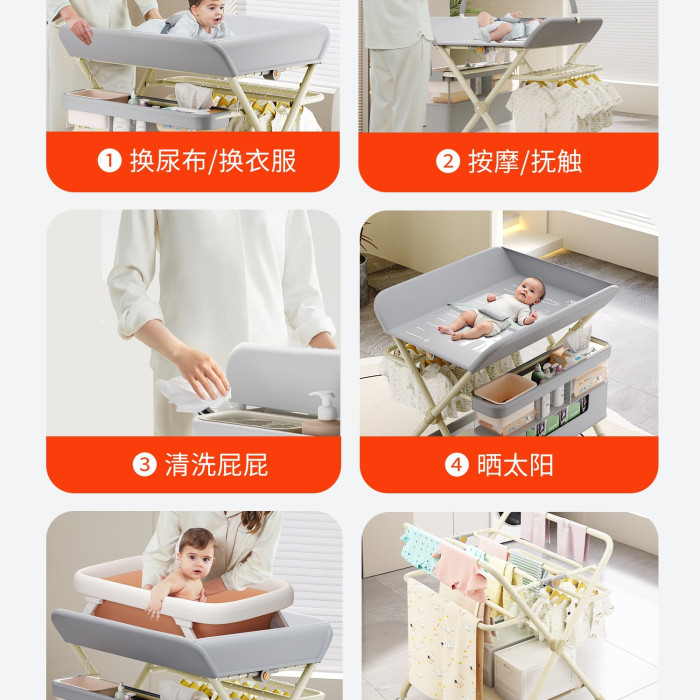 巴布貓嬰兒尿布台護理台多功能可折曡洗澡寶寶床上新生兒換尿布台