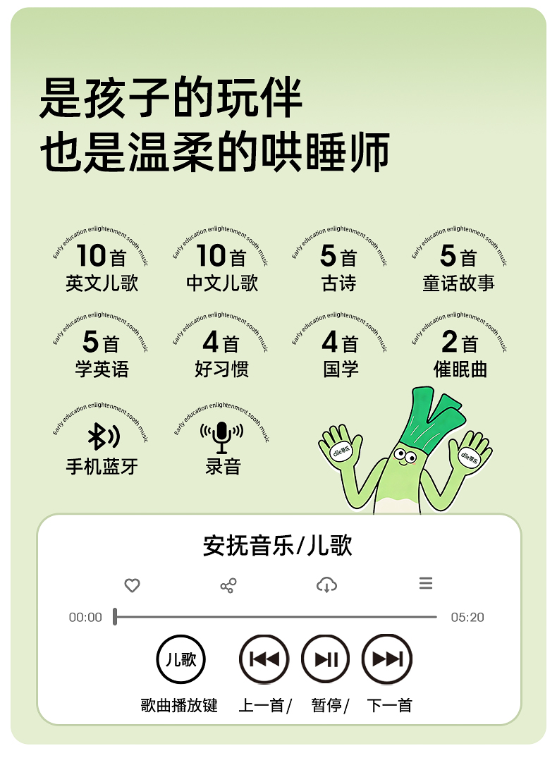 蒂樂大蔥嬰兒安撫玩偶手掌拍打哄睡神器寶寶拍屁股蔥姨媽哄娃睡覺