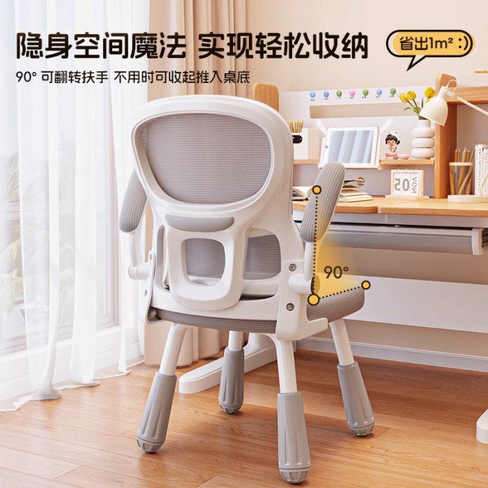 【適合120-150小學生】白框灰網+懸浮腰托-加厚海綿坐墊