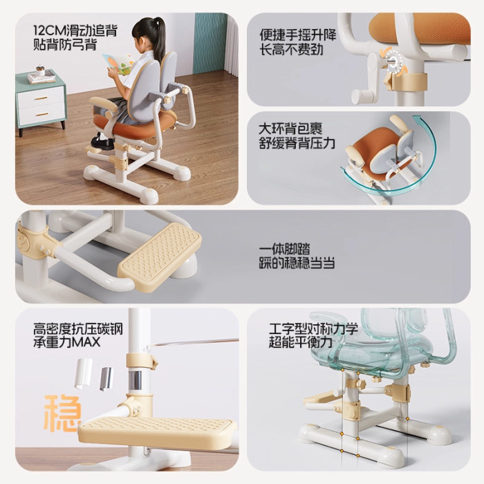 楓糖橘【加高款/加厚海綿】雙背手搖升降+可調節腳踏