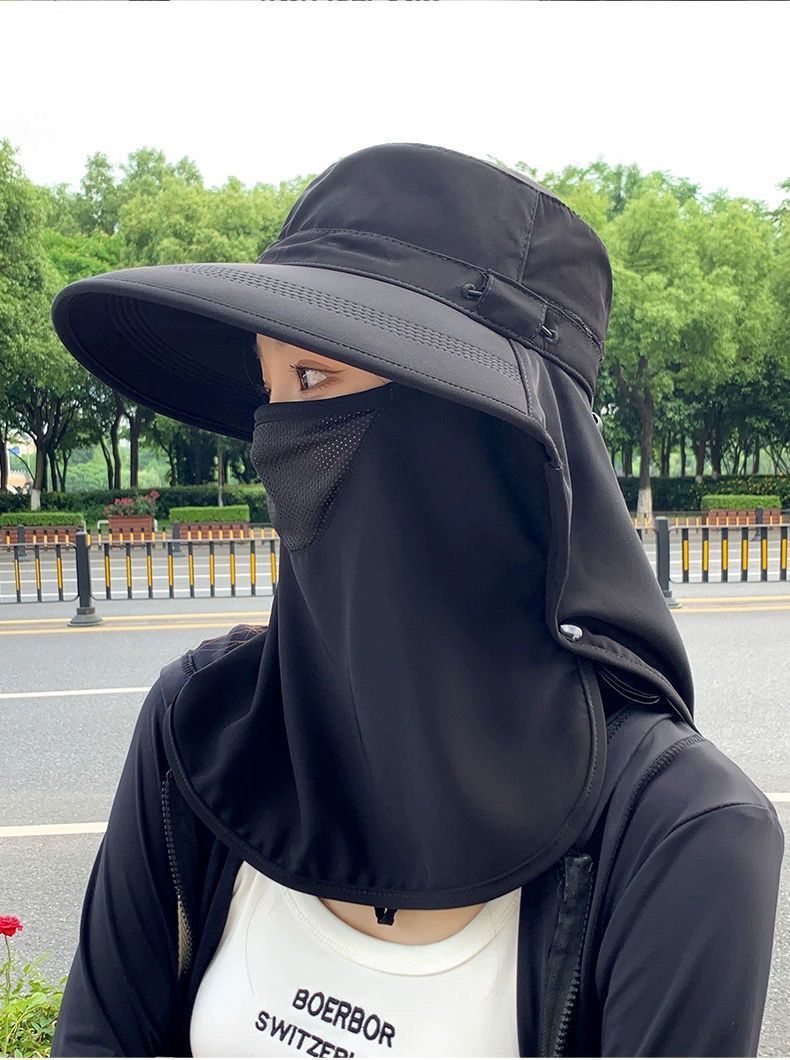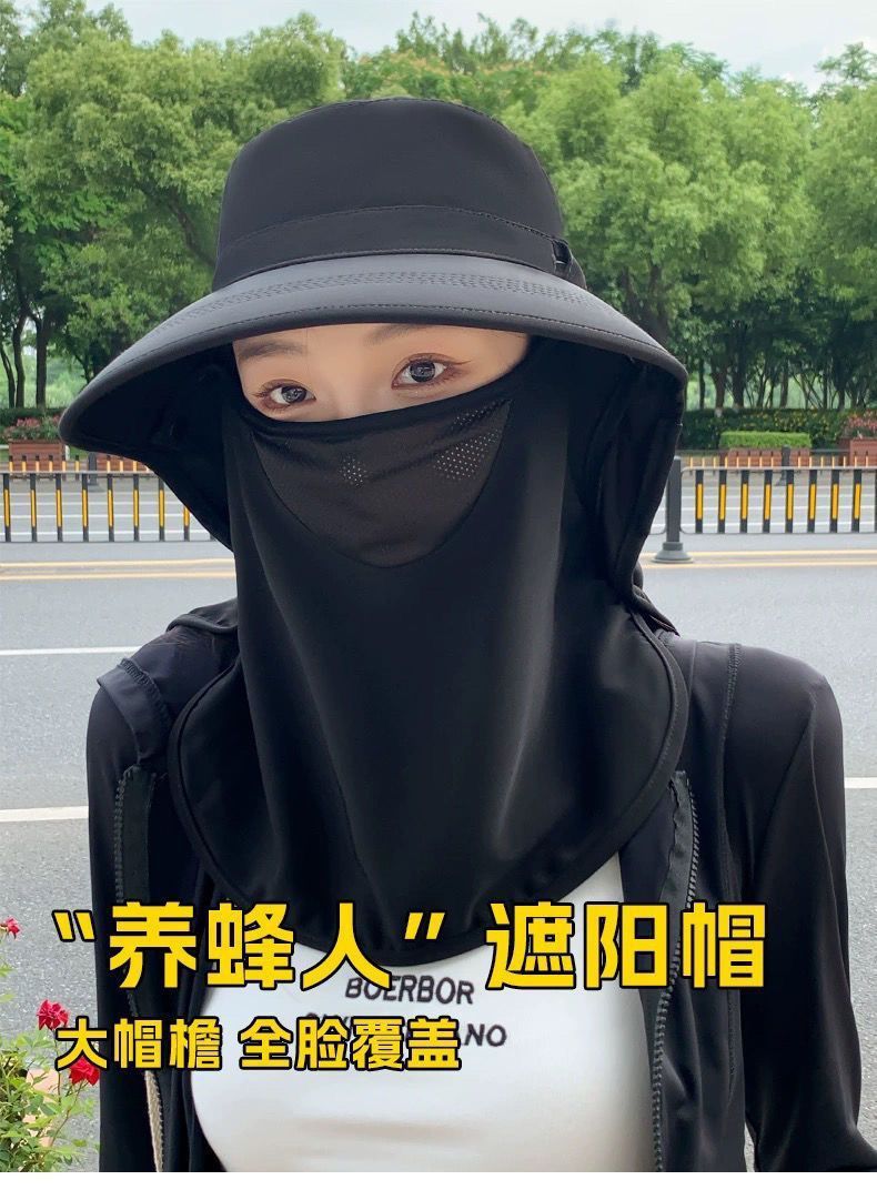 全方位防曬帽透氣遮臉面罩護頸一體太陽帽防紫外線戶外遮陽帽女夏