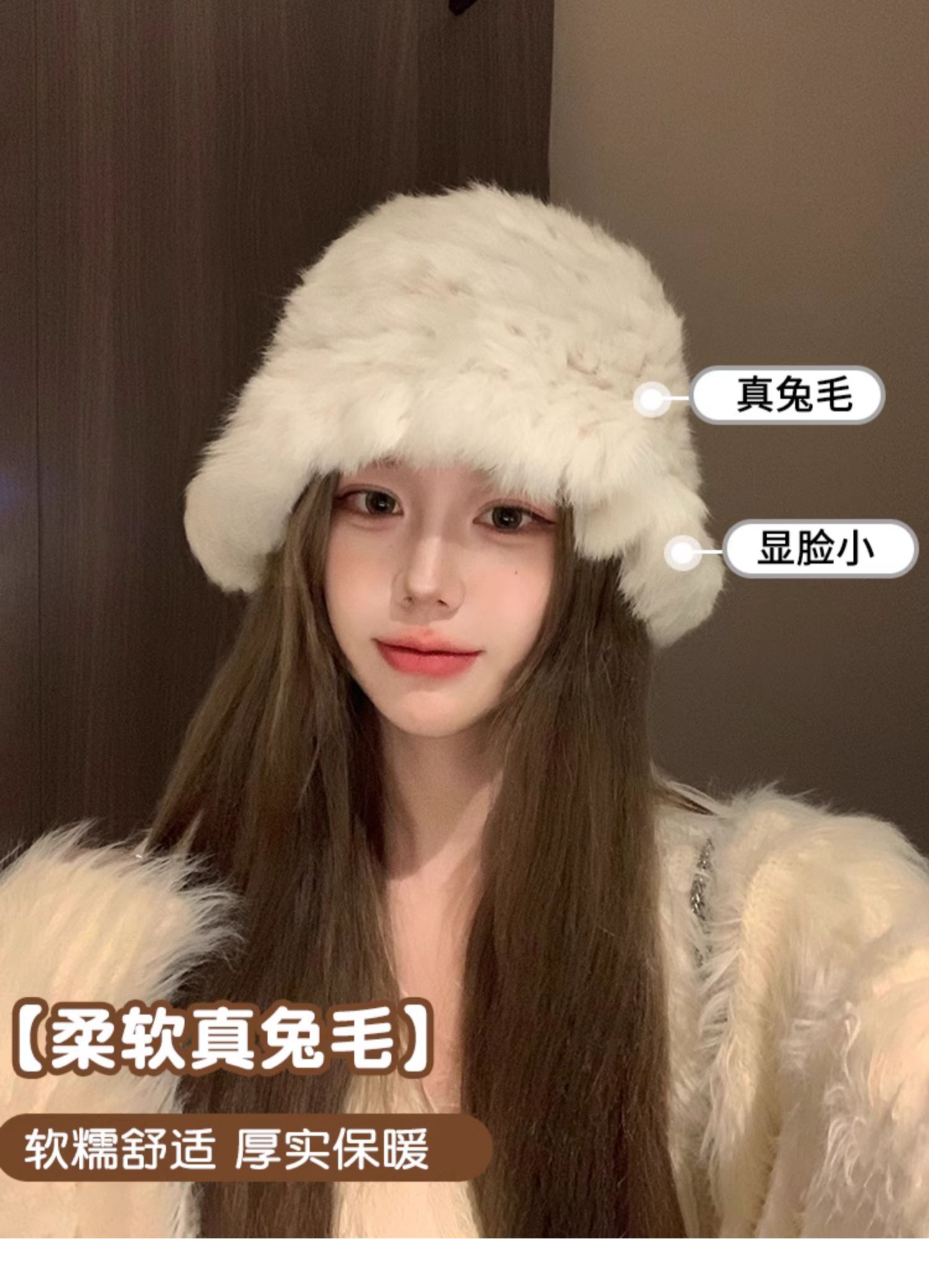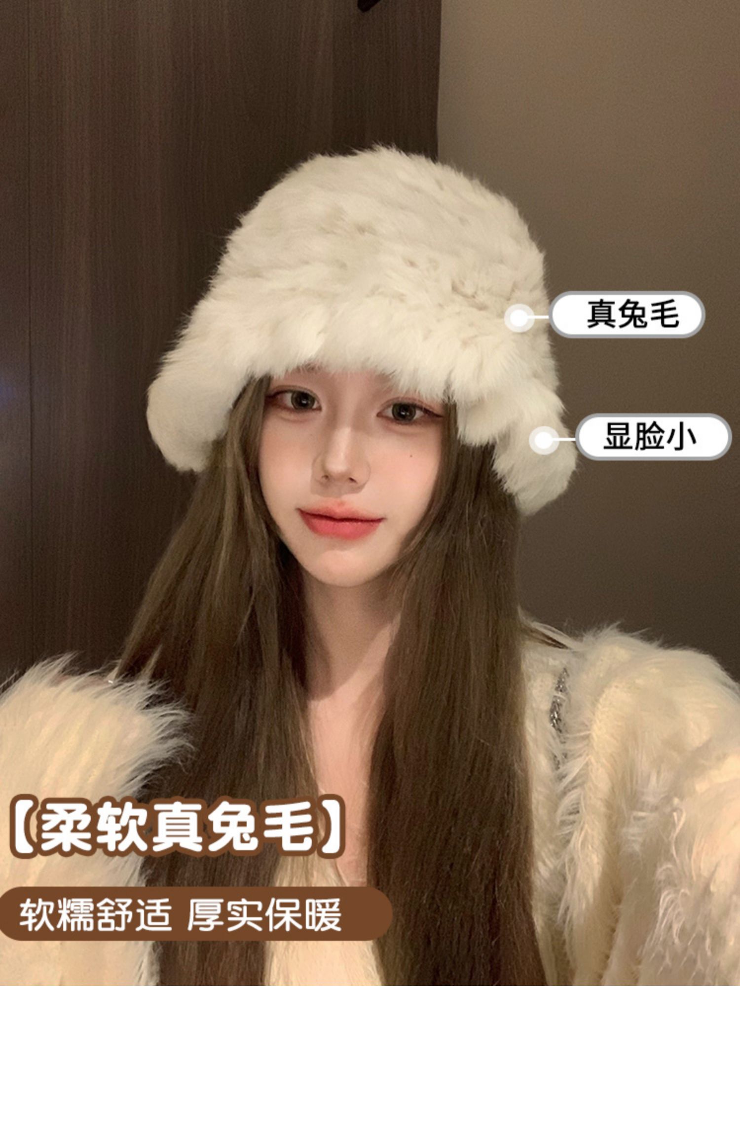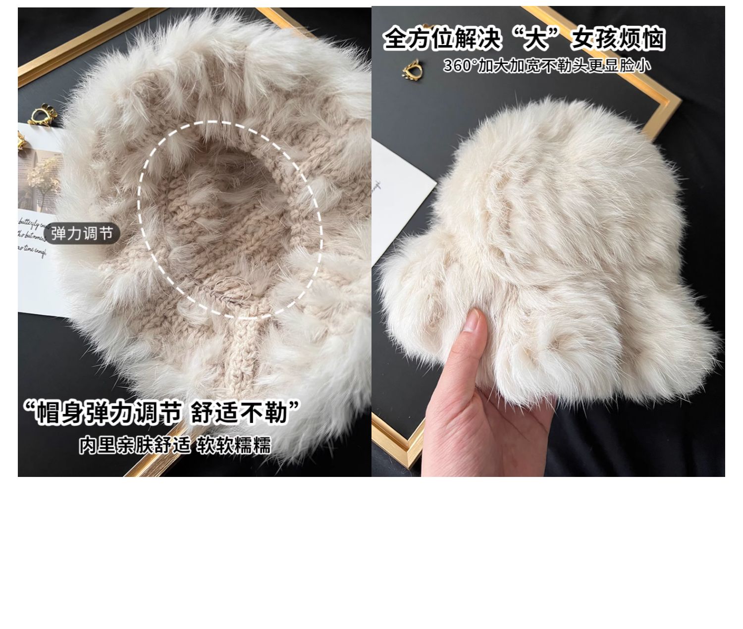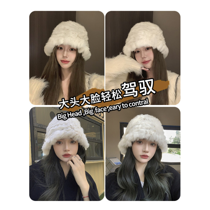 白色兔毛帽子女2025新款冬季保暖護耳針織毛線帽大頭圍毛絨漁夫帽