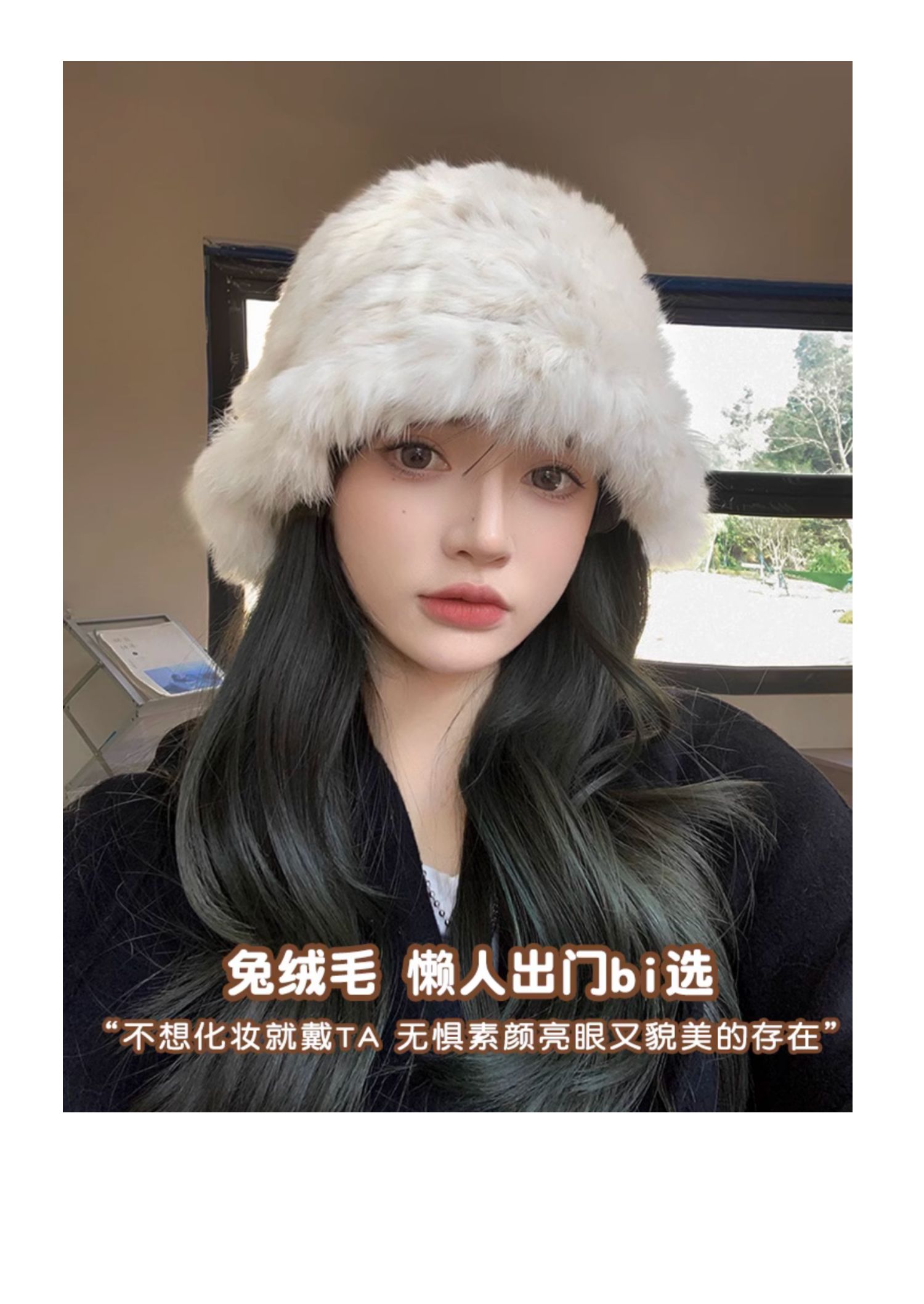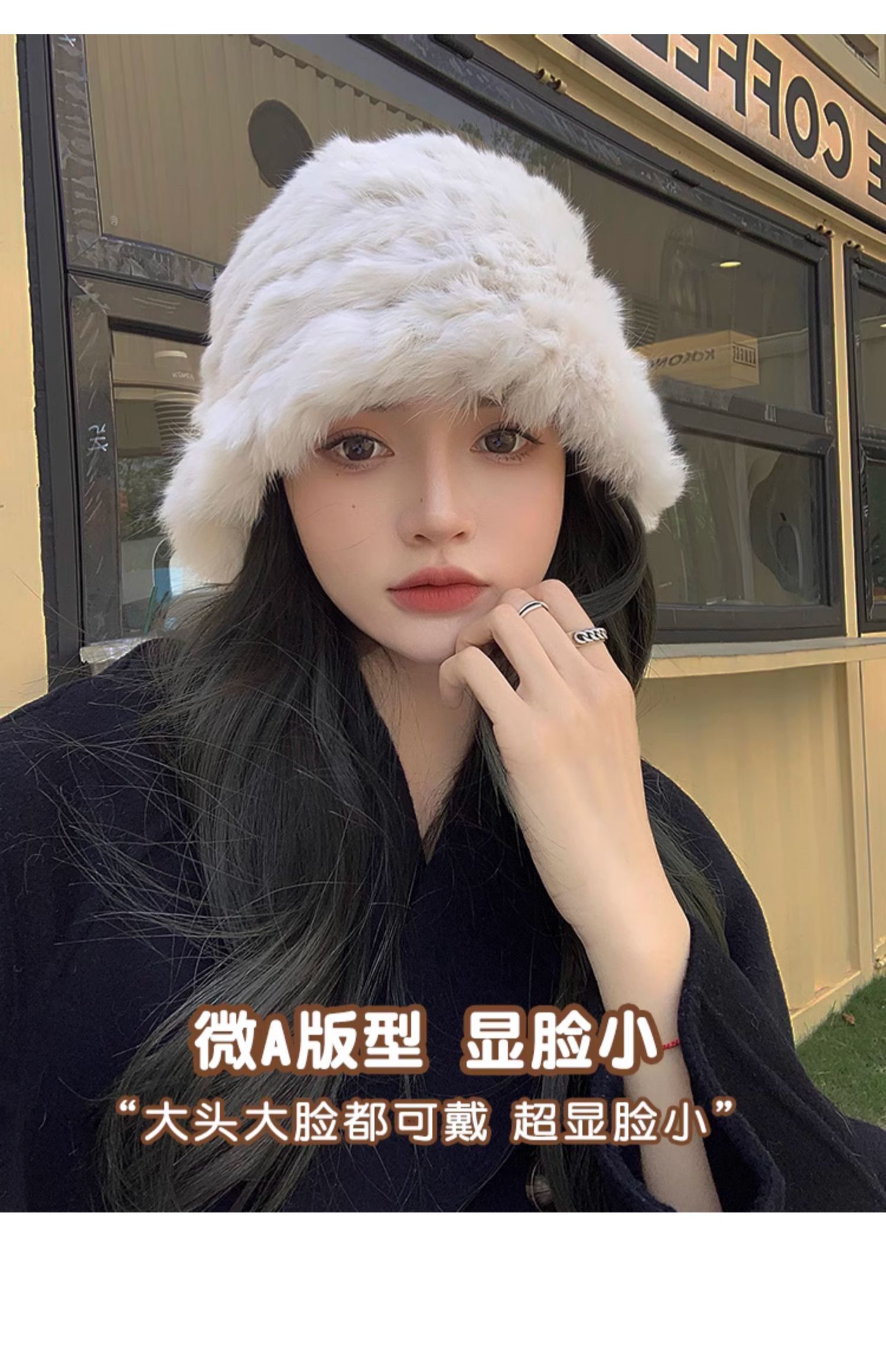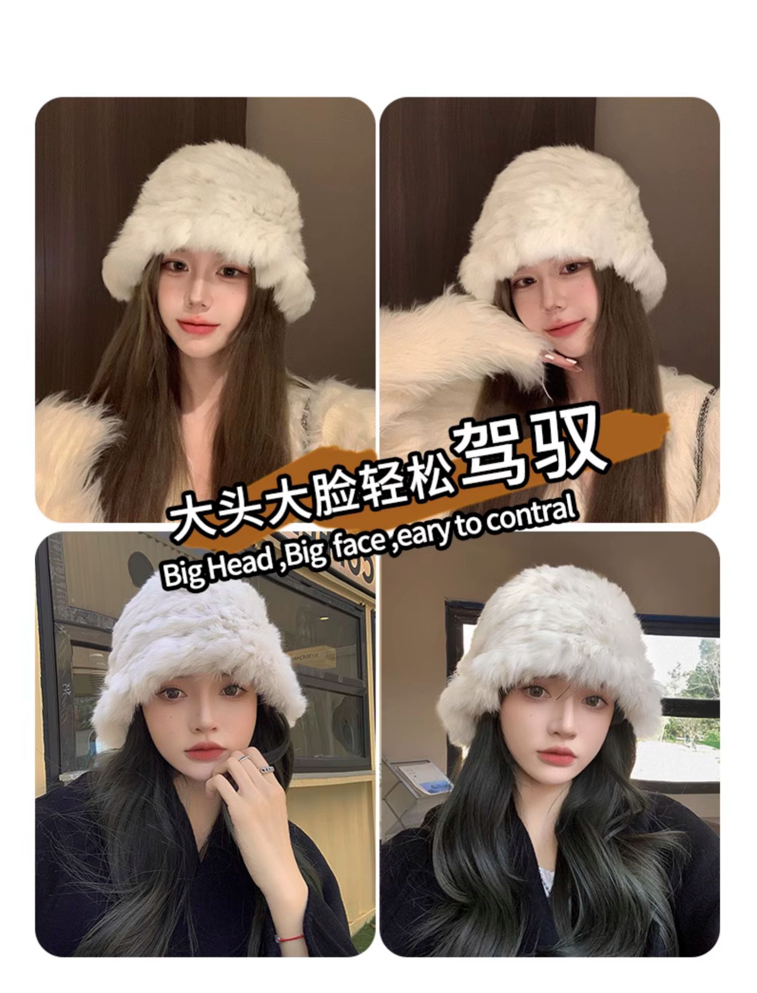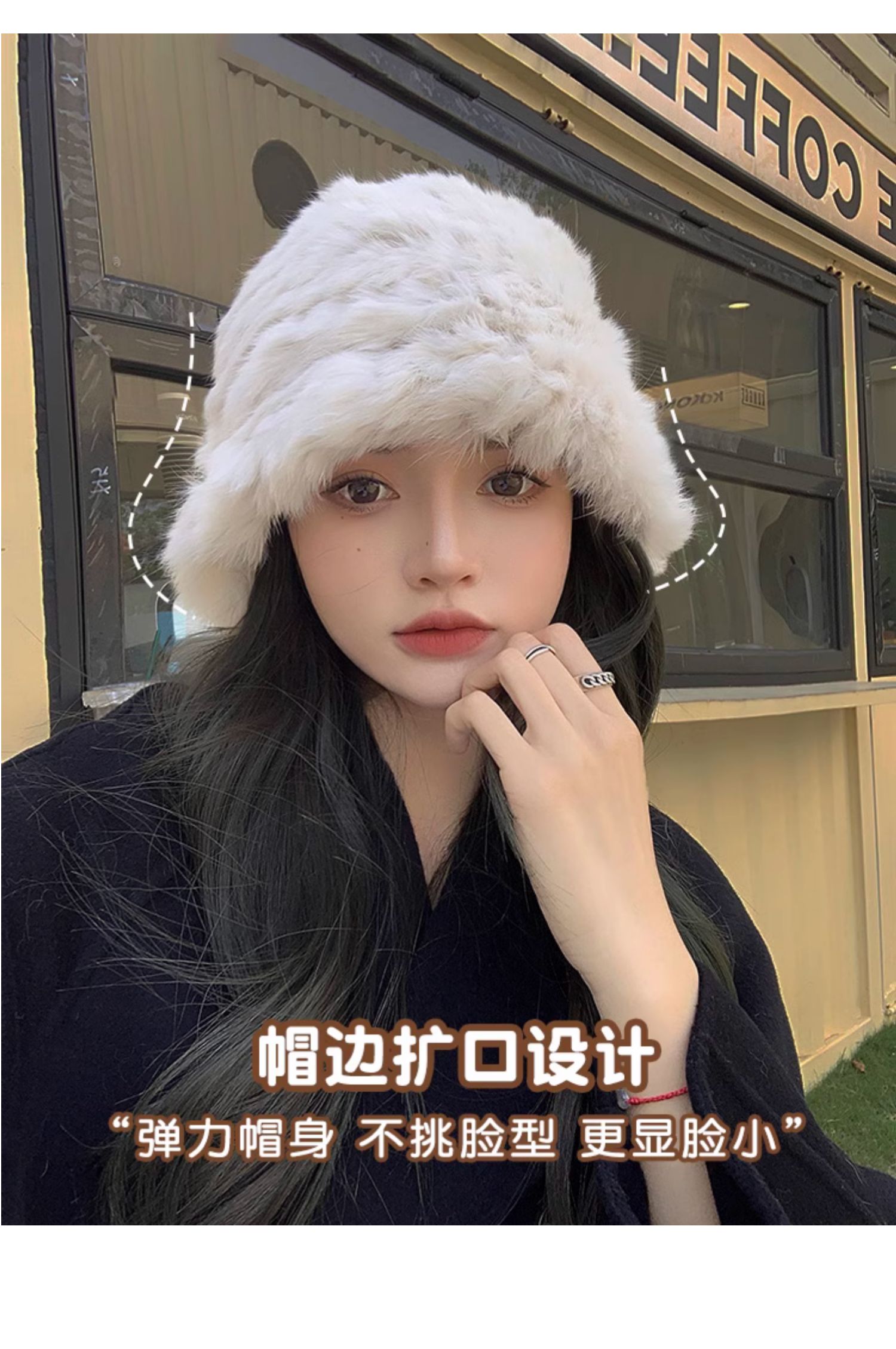 白色兔毛帽子女2025新款冬季保暖護耳針織毛線帽大頭圍毛絨漁夫帽