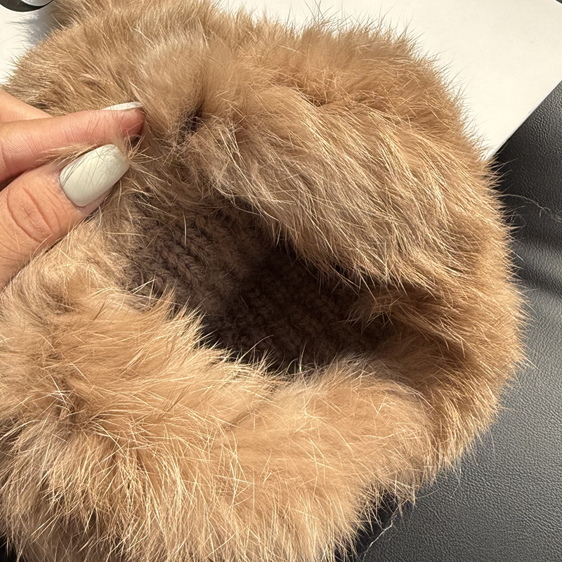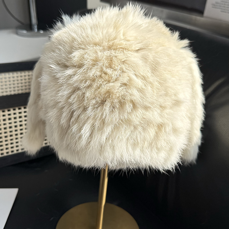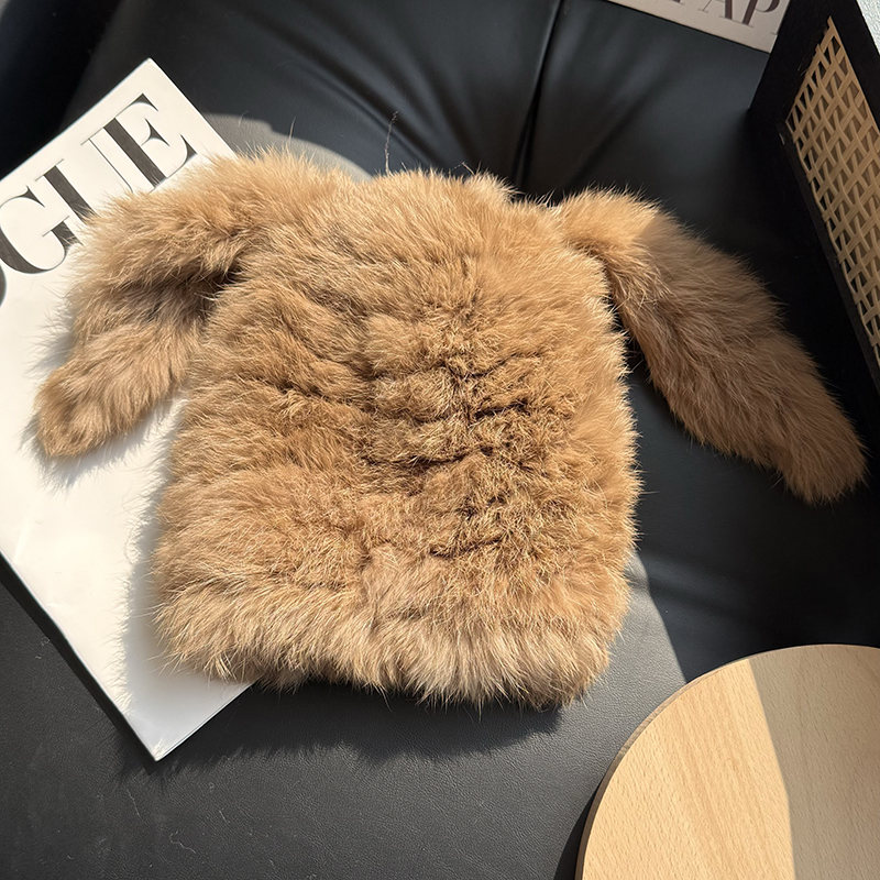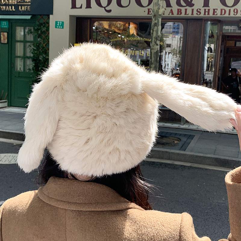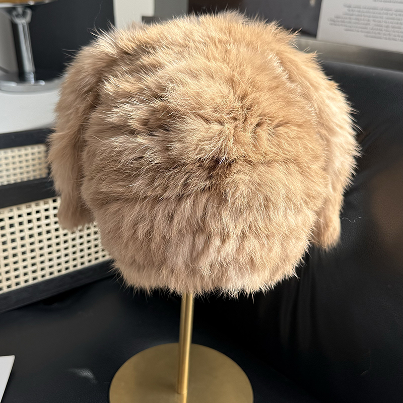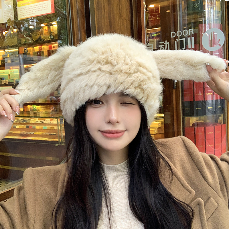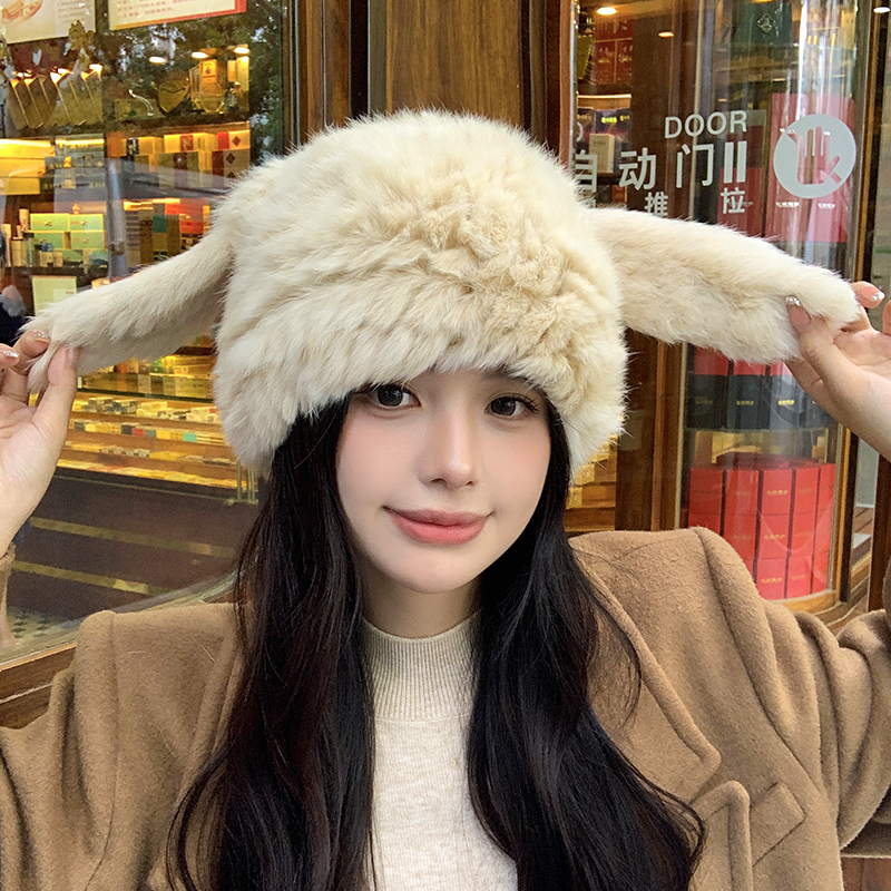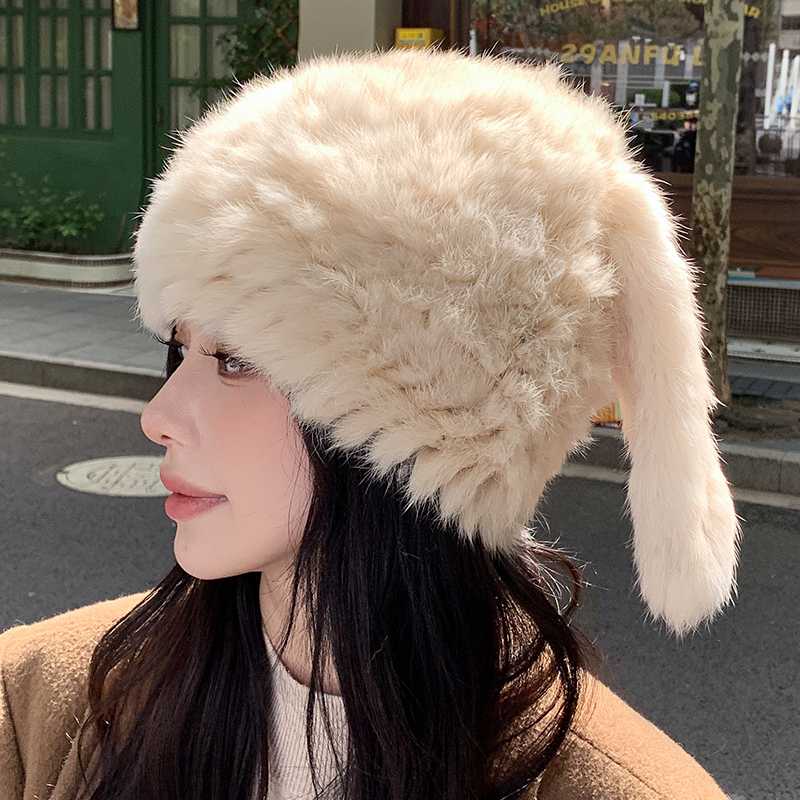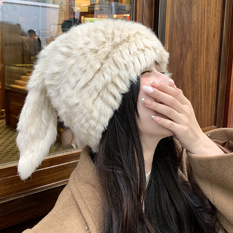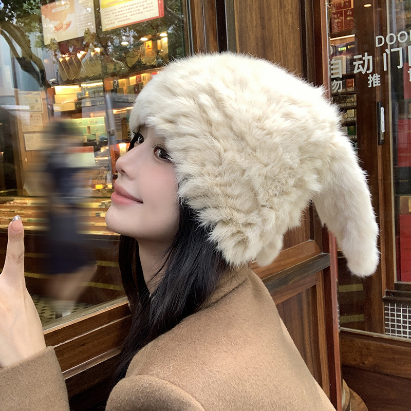 兔毛帽子可愛兔耳朵毛毛帽子保暖防寒帽顯臉小護耳帽包頭帽毛線帽