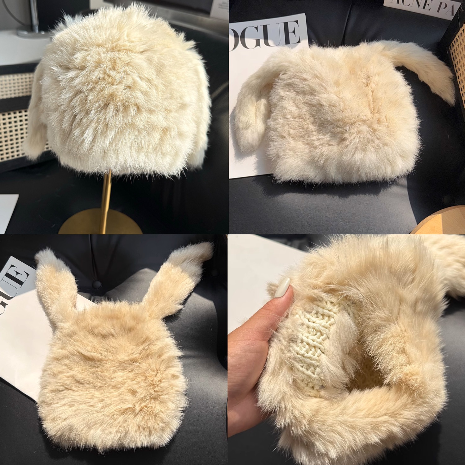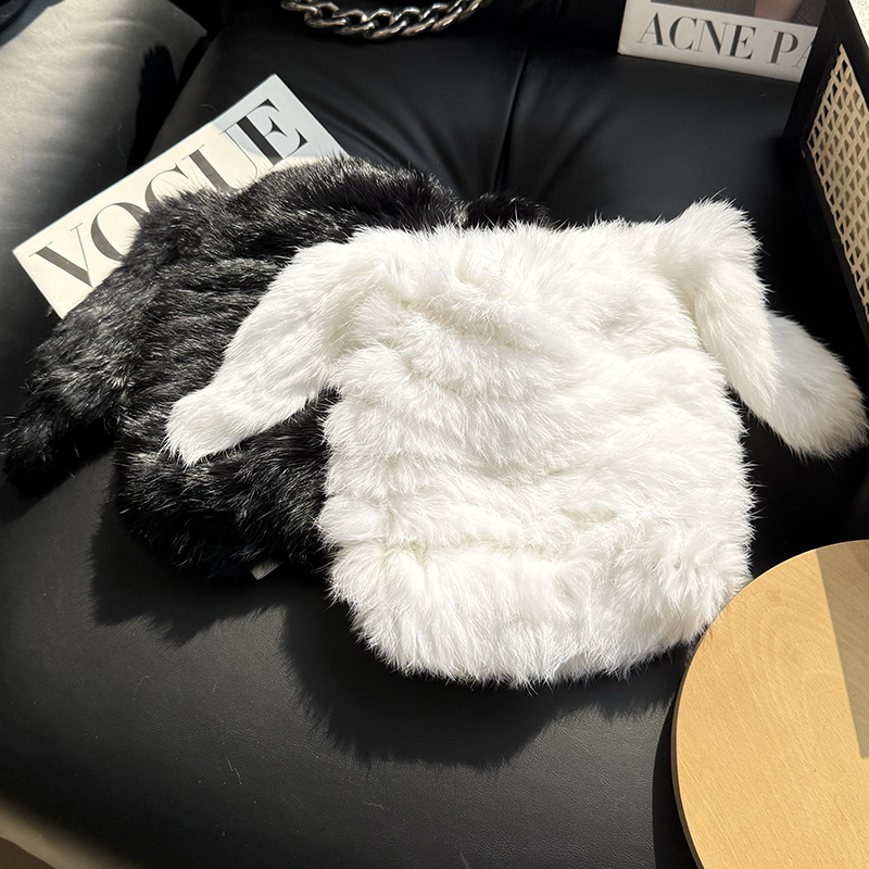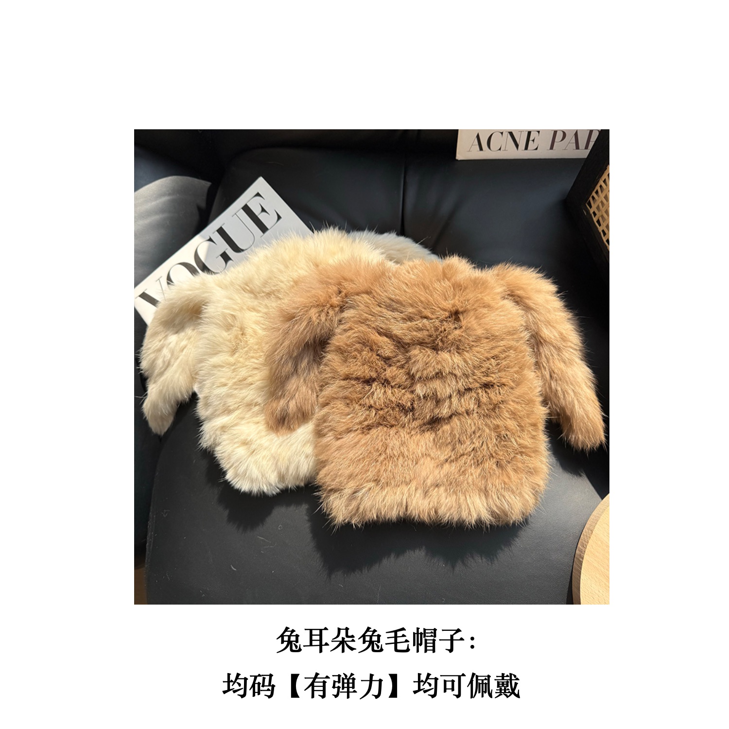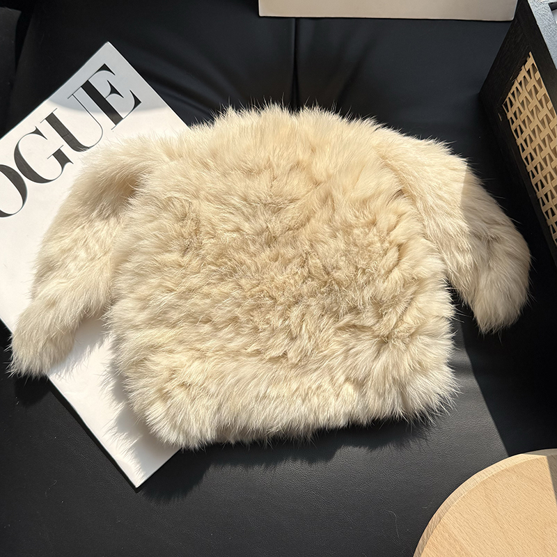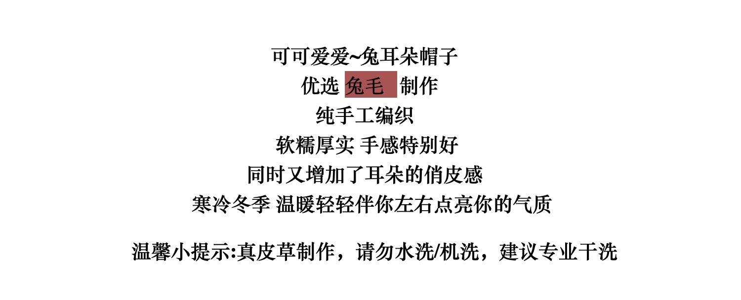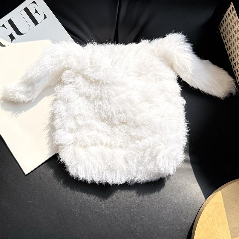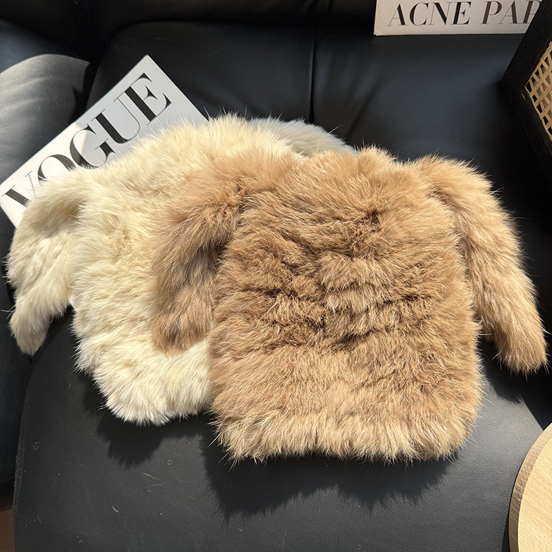 兔毛帽子可愛兔耳朵毛毛帽子保暖防寒帽顯臉小護耳帽包頭帽毛線帽