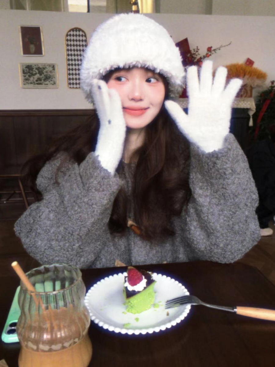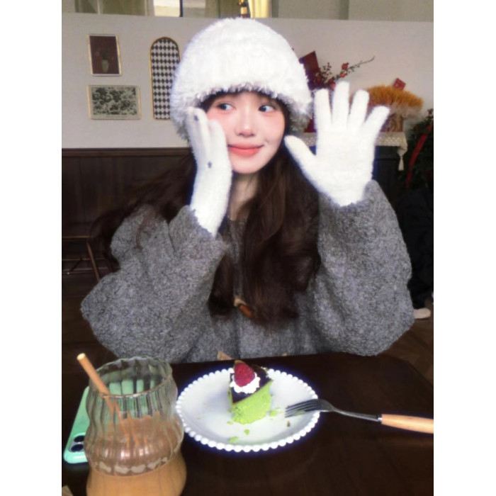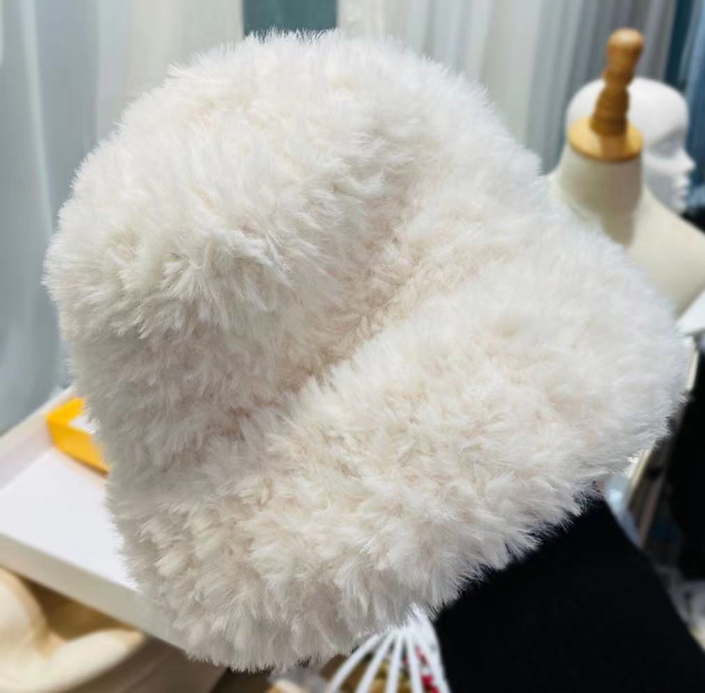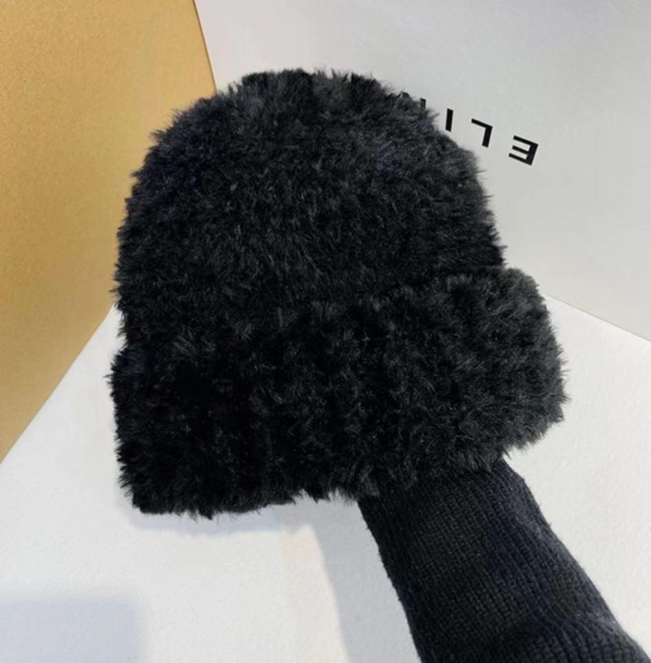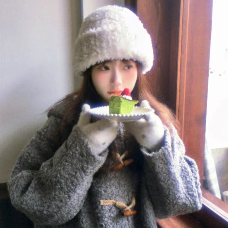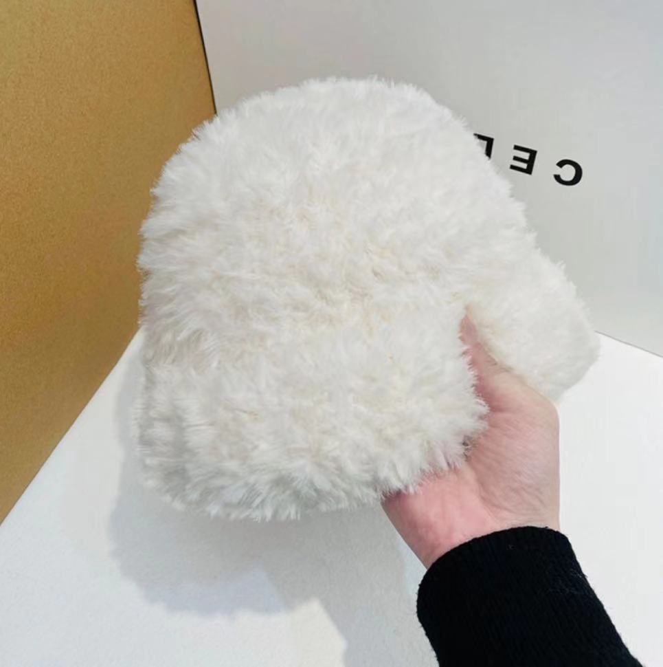 軟糯冬日加絨針織毛毛帽子純白漁夫帽女生冬季大頭圍保暖毛線護耳