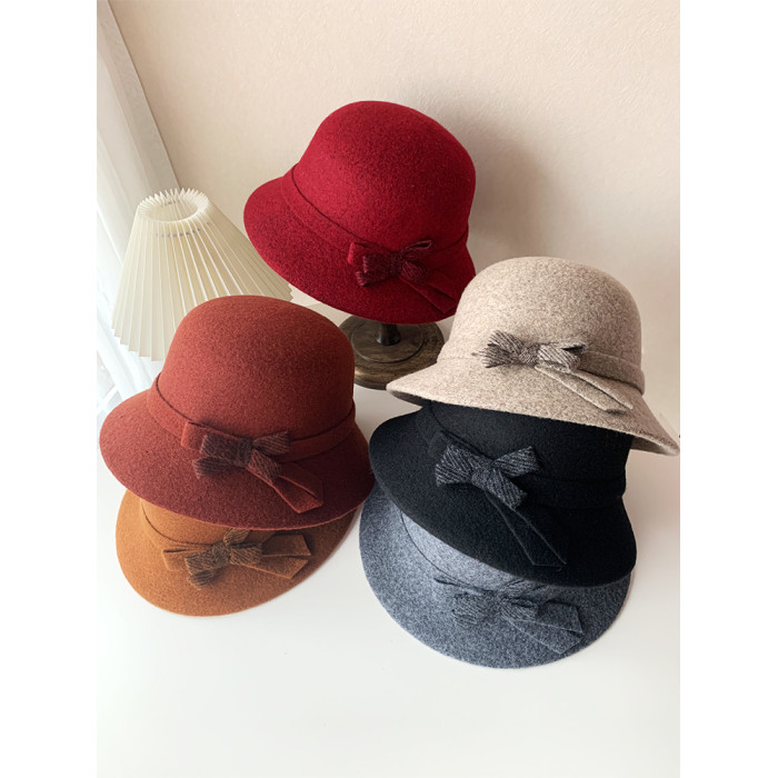 羊毛帽子女冬季毛呢漁夫帽媽媽時尚洋氣禮帽中老年人奶奶保暖盆帽