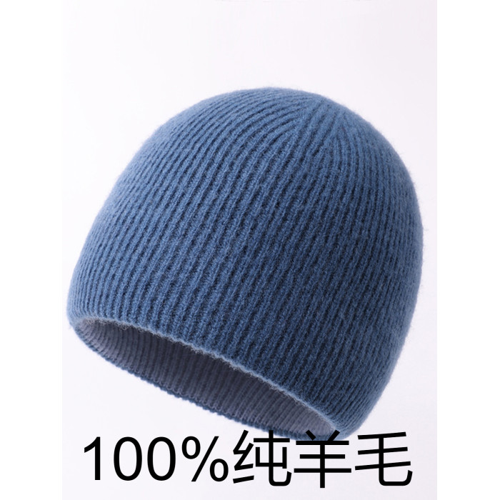 2023冬季新款純羊毛帽子女秋冬保暖加厚毛線帽針織帽子男雙面可戴