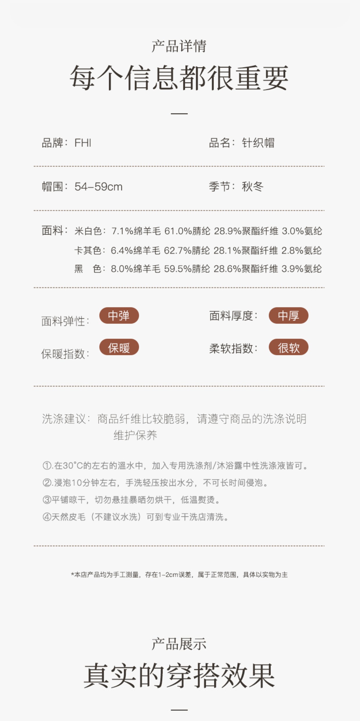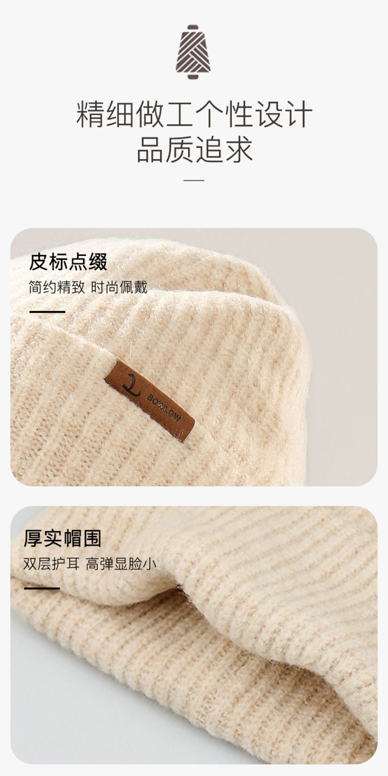 FHI羊毛帽子女秋冬季雙層加厚保暖護耳針織帽顯臉小大頭圍毛線帽