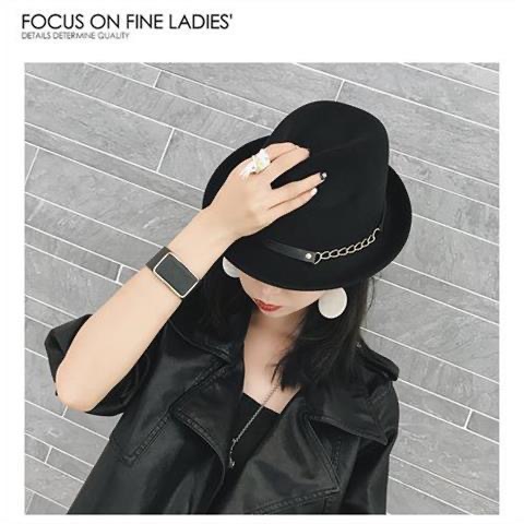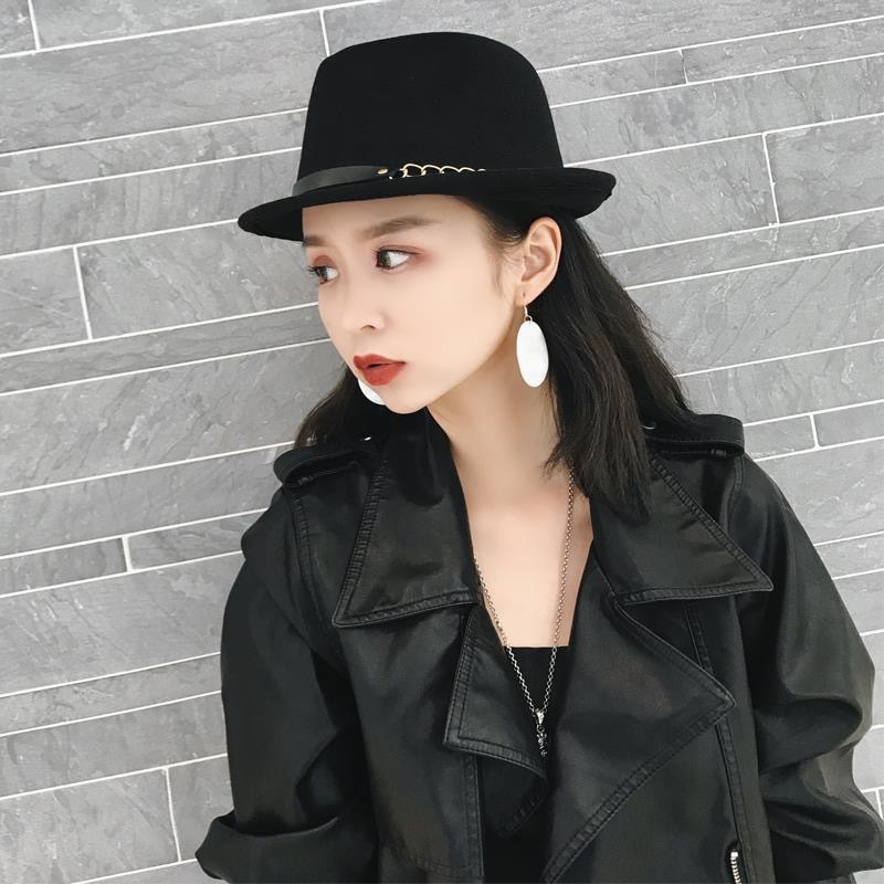 韓國秋冬英倫氈呢時尚復古毛帽子禮帽小沿卷邊男女士錐頂爵士帽潮