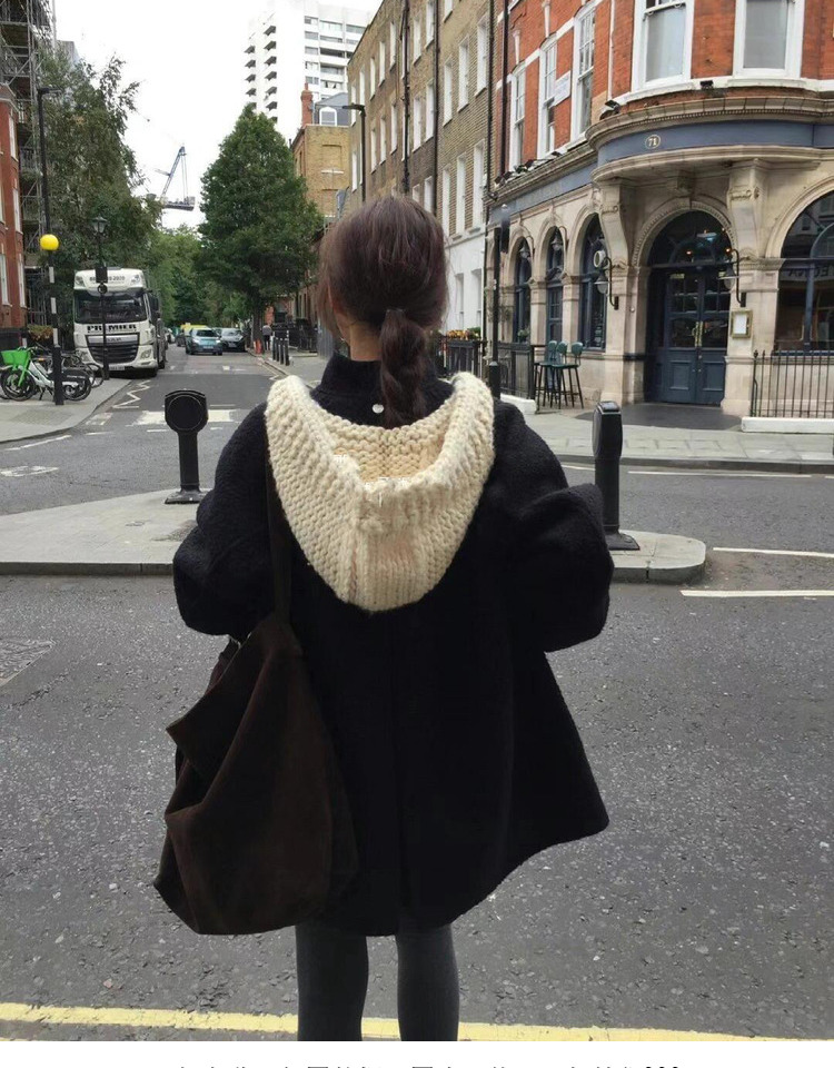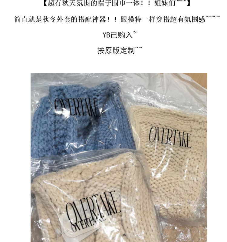 Overtake手工羊毛帽帽子圍巾一體 秋冬搭配毛線帽 韓國東大門坎肩
