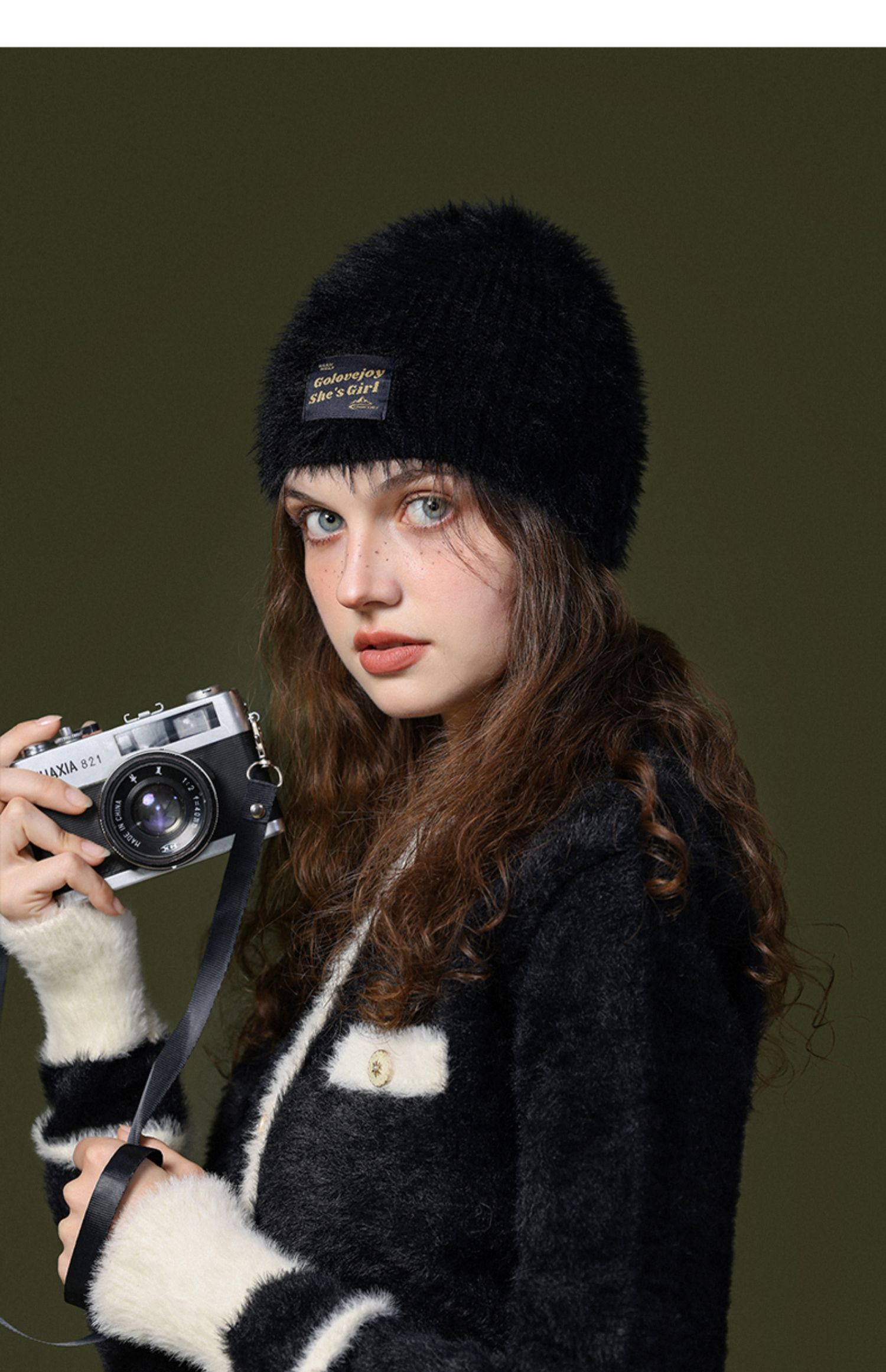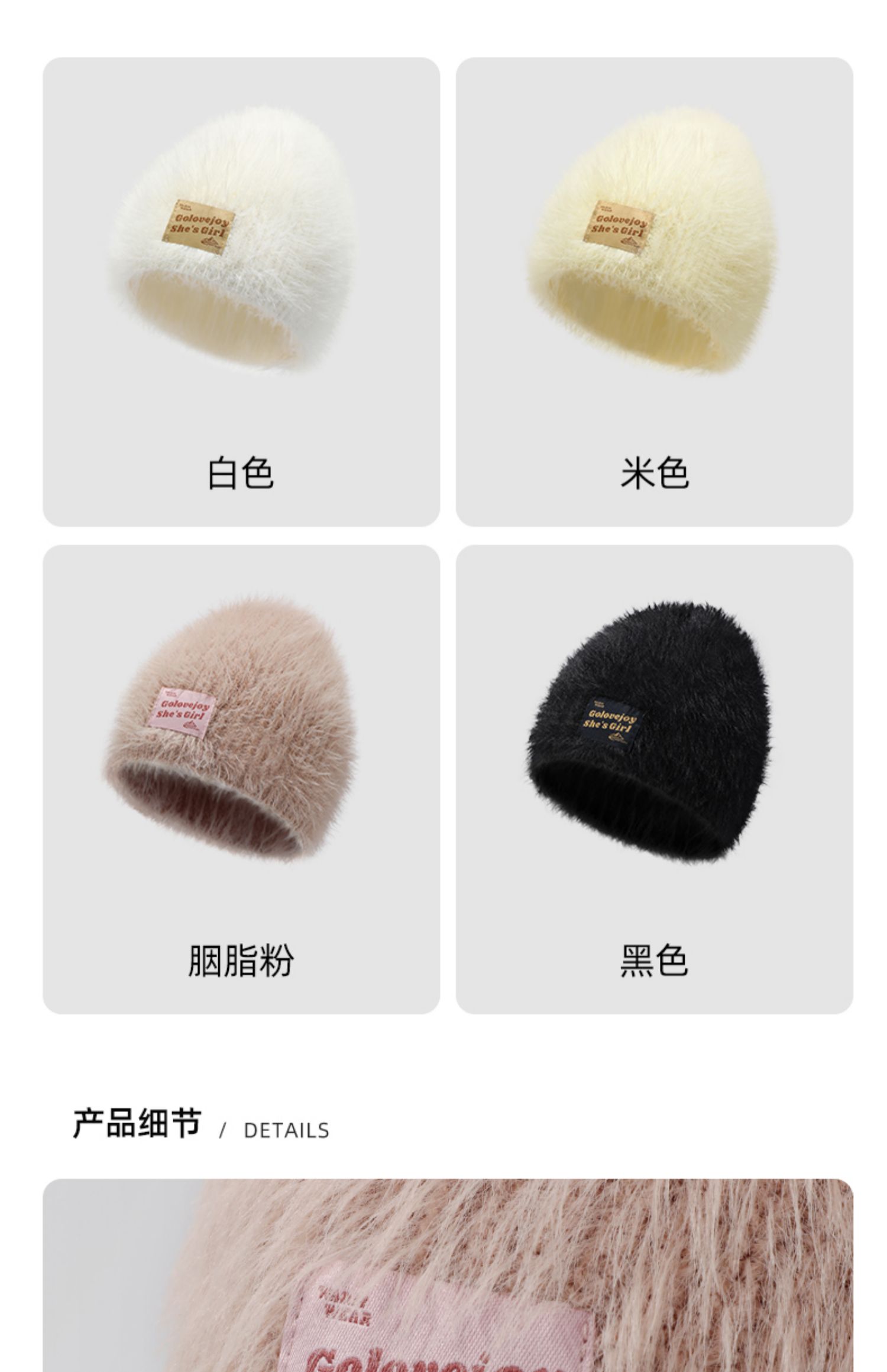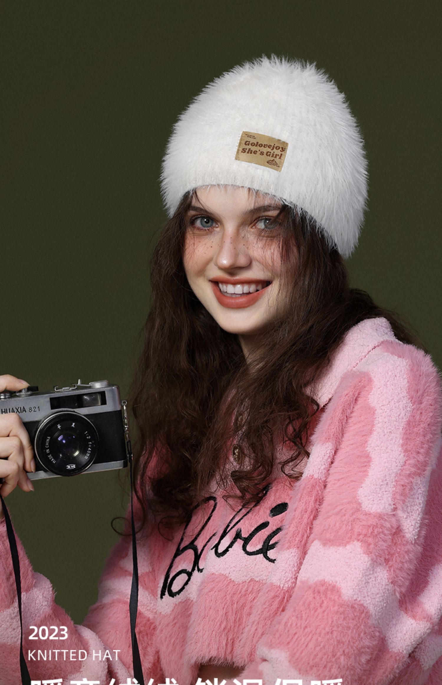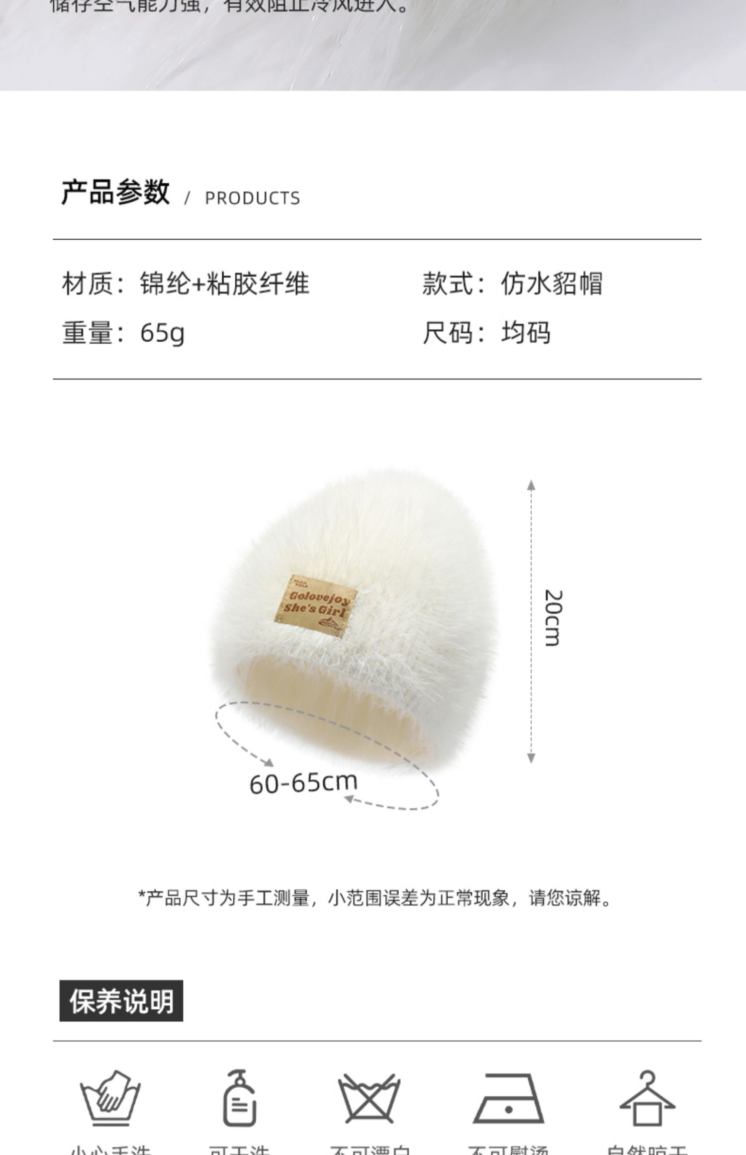 秋冬新款針織帽女生毛絨保暖仿貂毛帽子冷帽時尚百搭包頭帽顯臉小