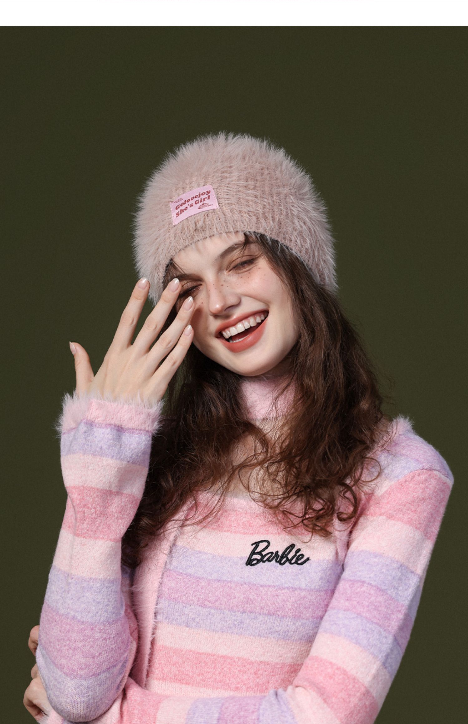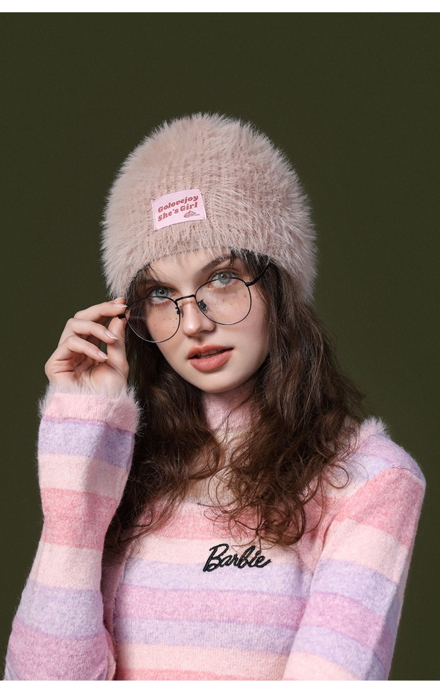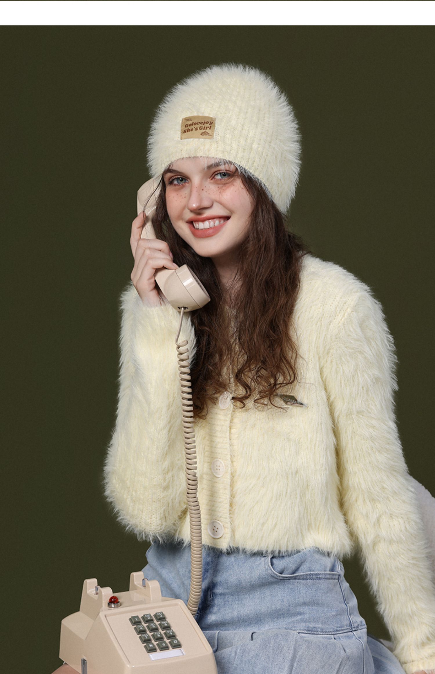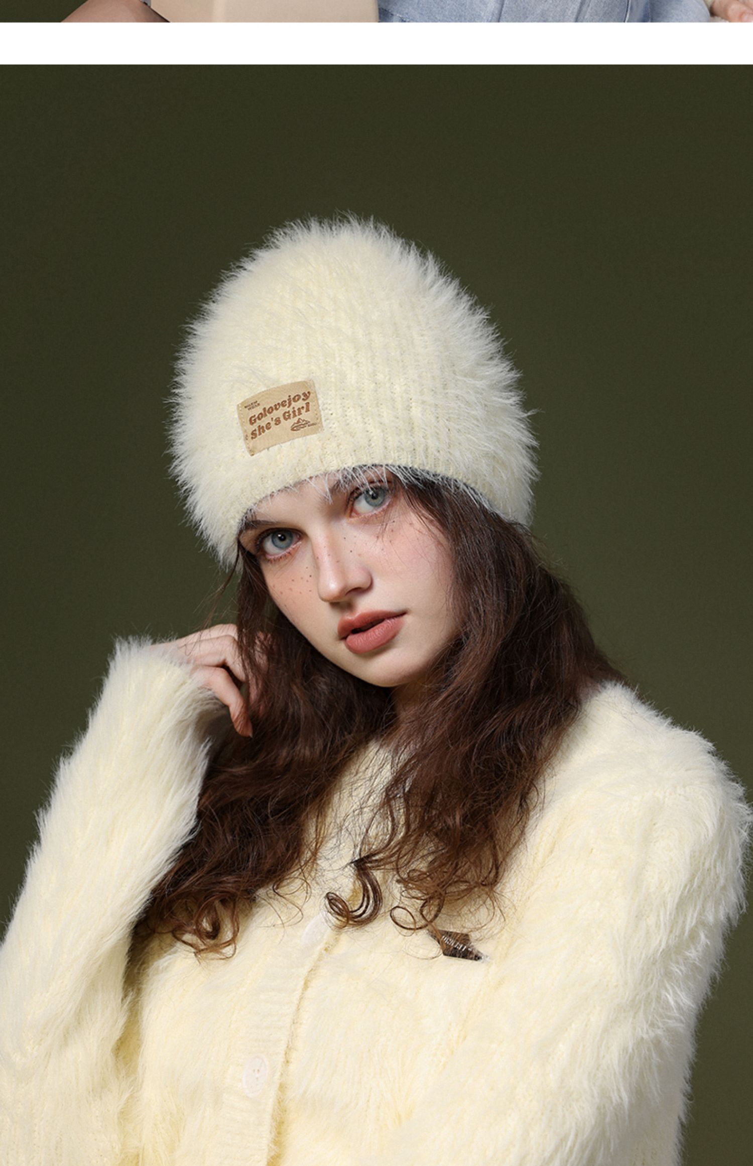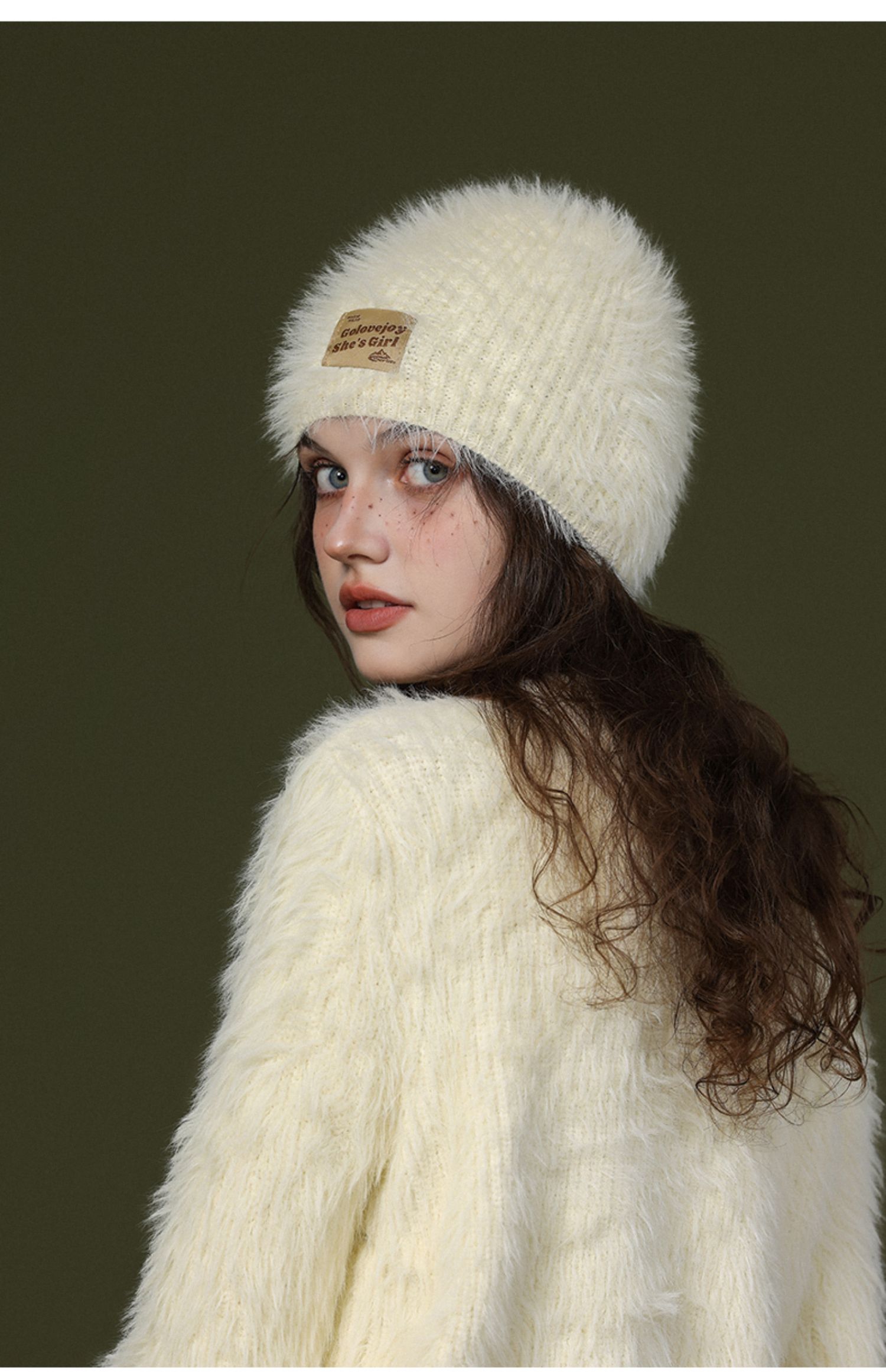 秋冬新款針織帽女生毛絨保暖仿貂毛帽子冷帽時尚百搭包頭帽顯臉小
