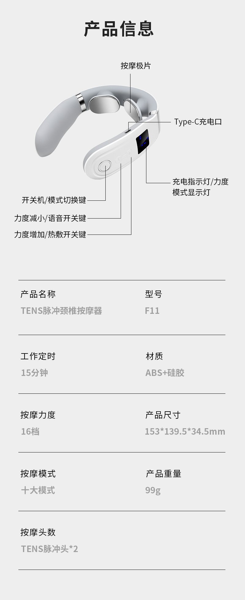 | 功能 | 多模式按摩,加熱,語音提示,遙控。 |