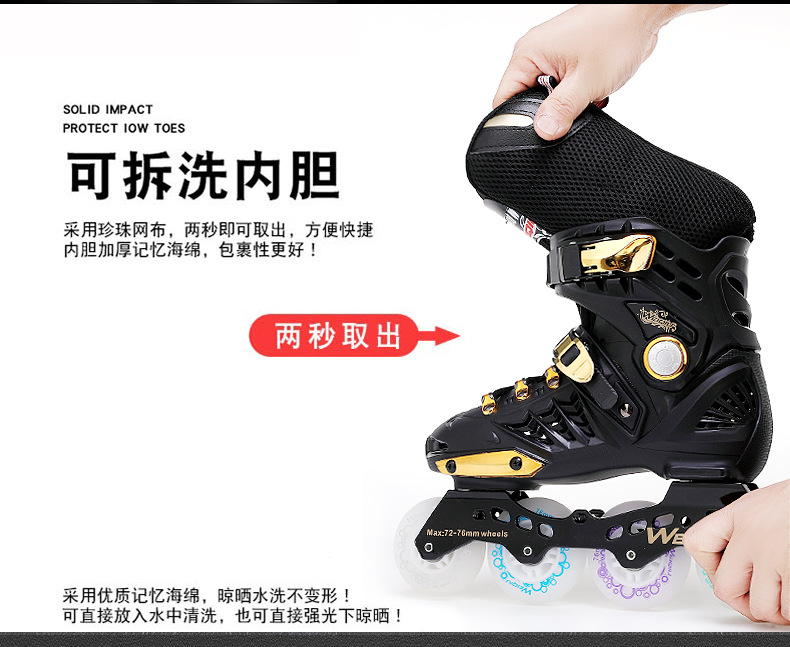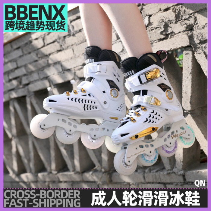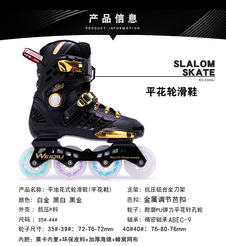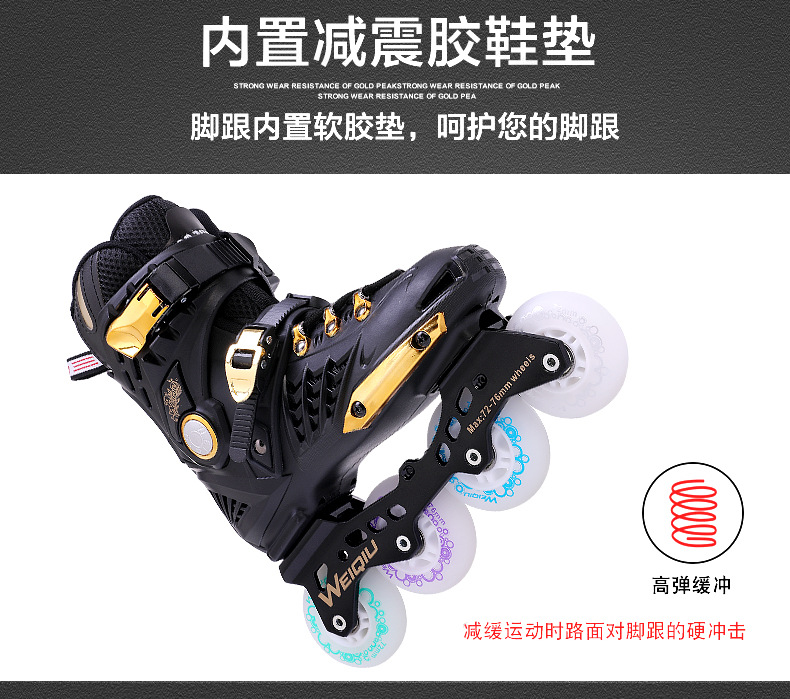 霤冰鞋成人平花式校園輪滑鞋黑金單排旱冰鞋初學滑行鞋暴走鞋透氣