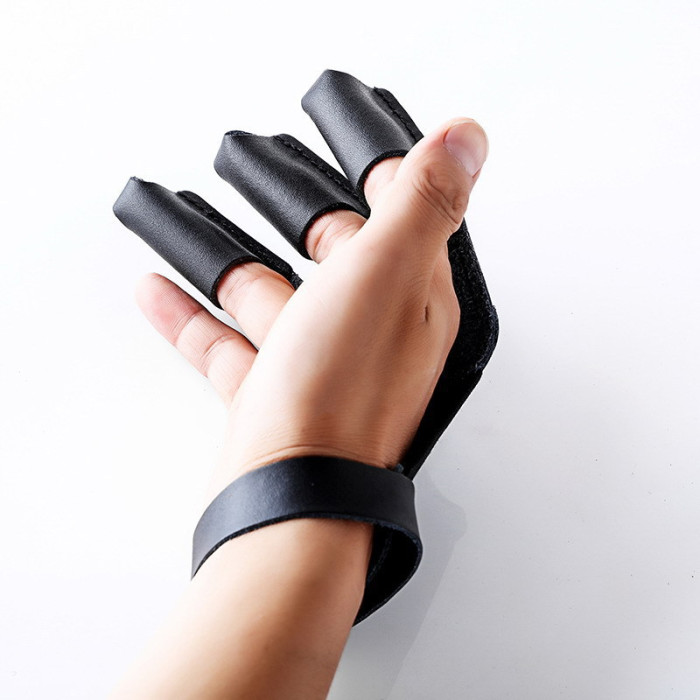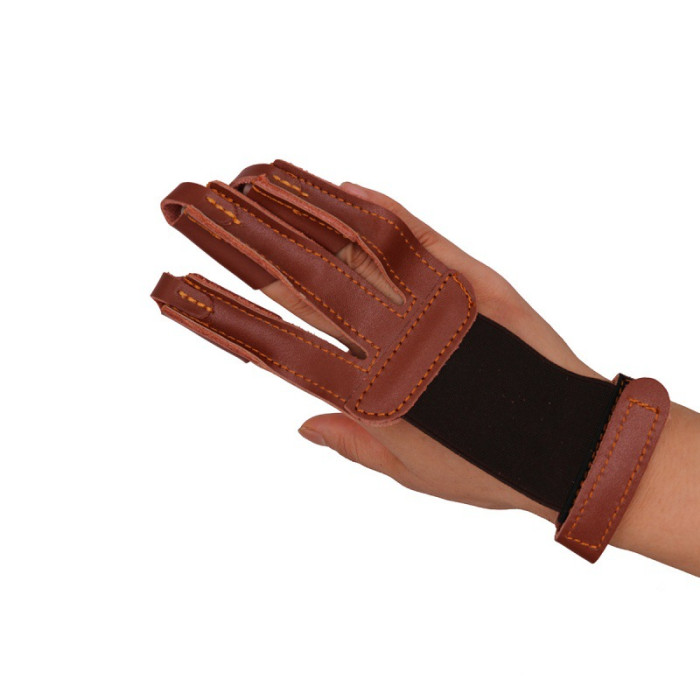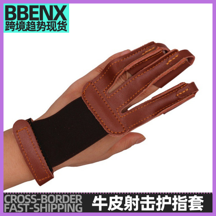 棕色牛皮護指射擊射箭傳統反曲弓箭護具三指弓箭射箭競技手部護具