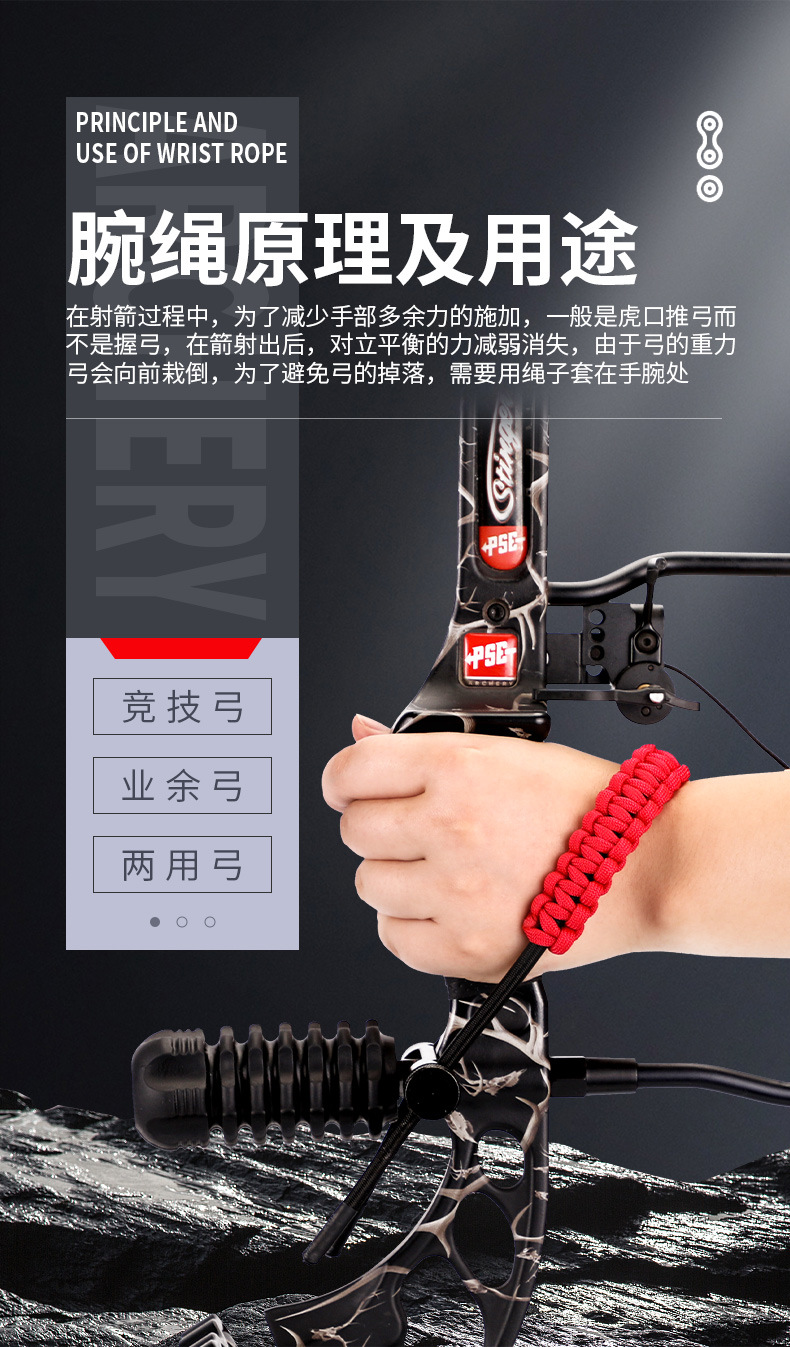 弓箭器材射箭複合腕繩弓箭腕繩手編腕繩長短可調複合滑輪弓手編腕
