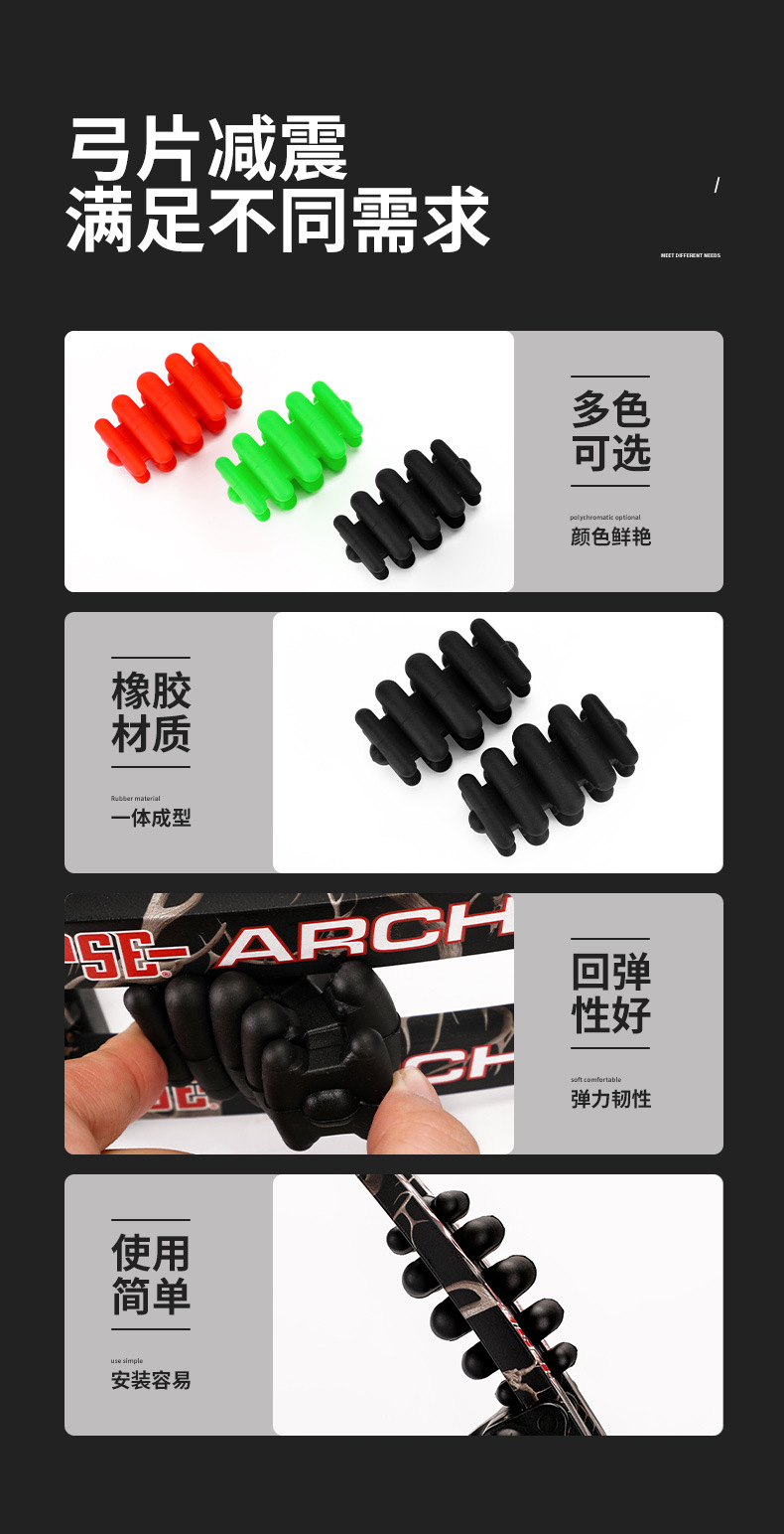 弓片橡膠減震膠弓片橡膠減震膠黑色複合弓片減震器毛毛蟲減震膠射箭減少弓片震動