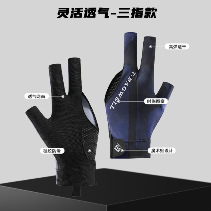 台球手套三指露指手套防滑透氣斯諾克桌球比賽手套台球防滑桿手套