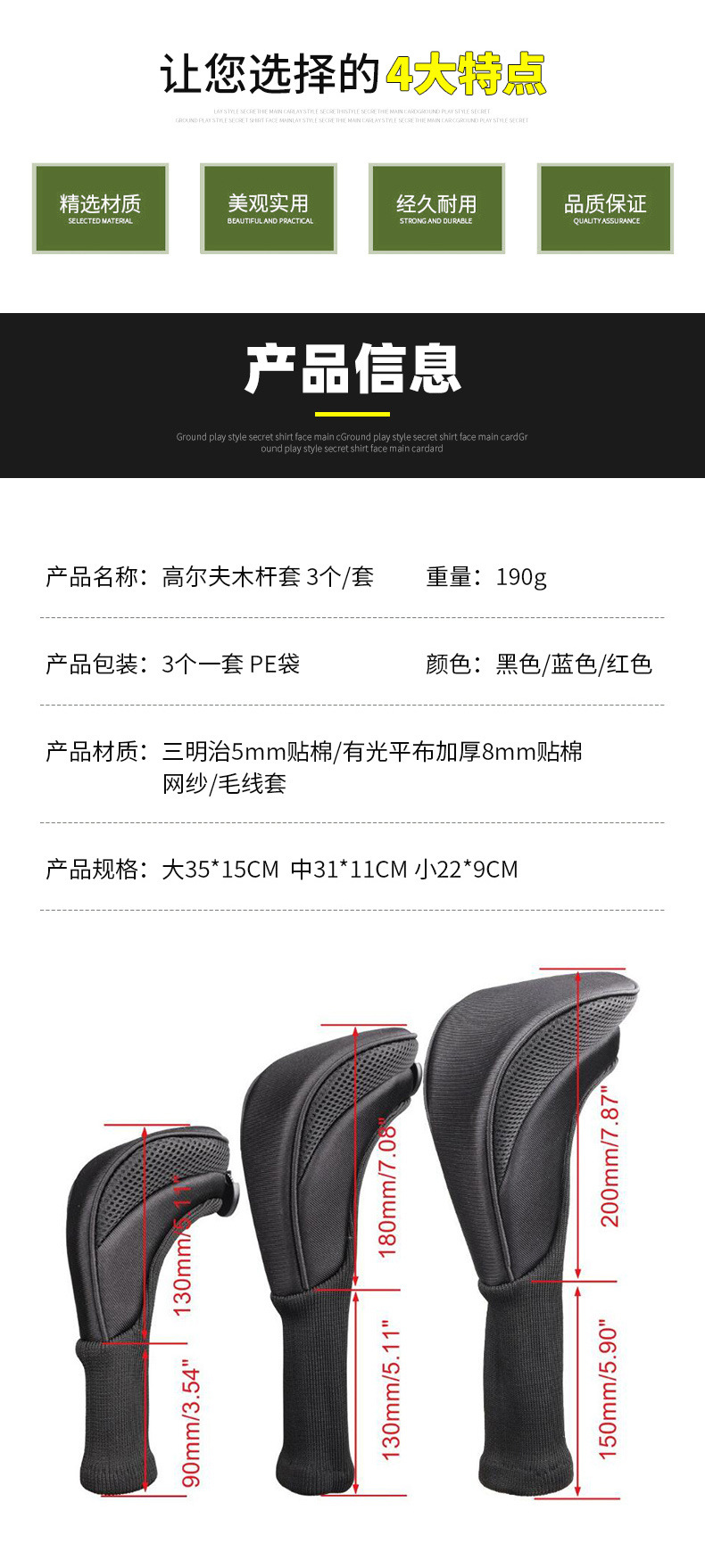 高爾夫木桿套 針織球桿帽套 球桿保護套 一三五號木桿保護套