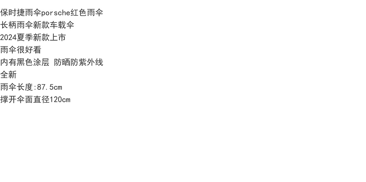 保時捷雨繖porsche紅色雨繖長柄雨繖車用繖 有防曬塗層 4S店雨繖