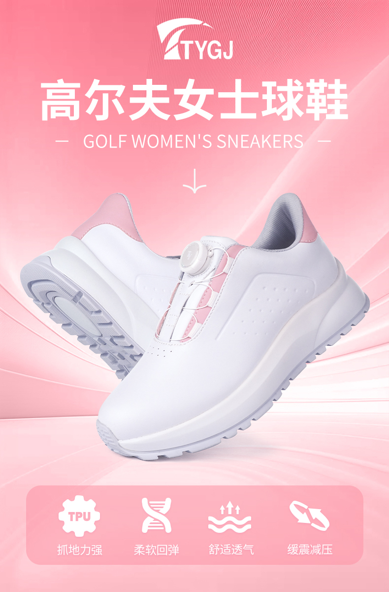 2025夏季高爾夫女士球鞋旋鈕鞋帶增高百搭厚底防滑防水輕便休閒鞋
