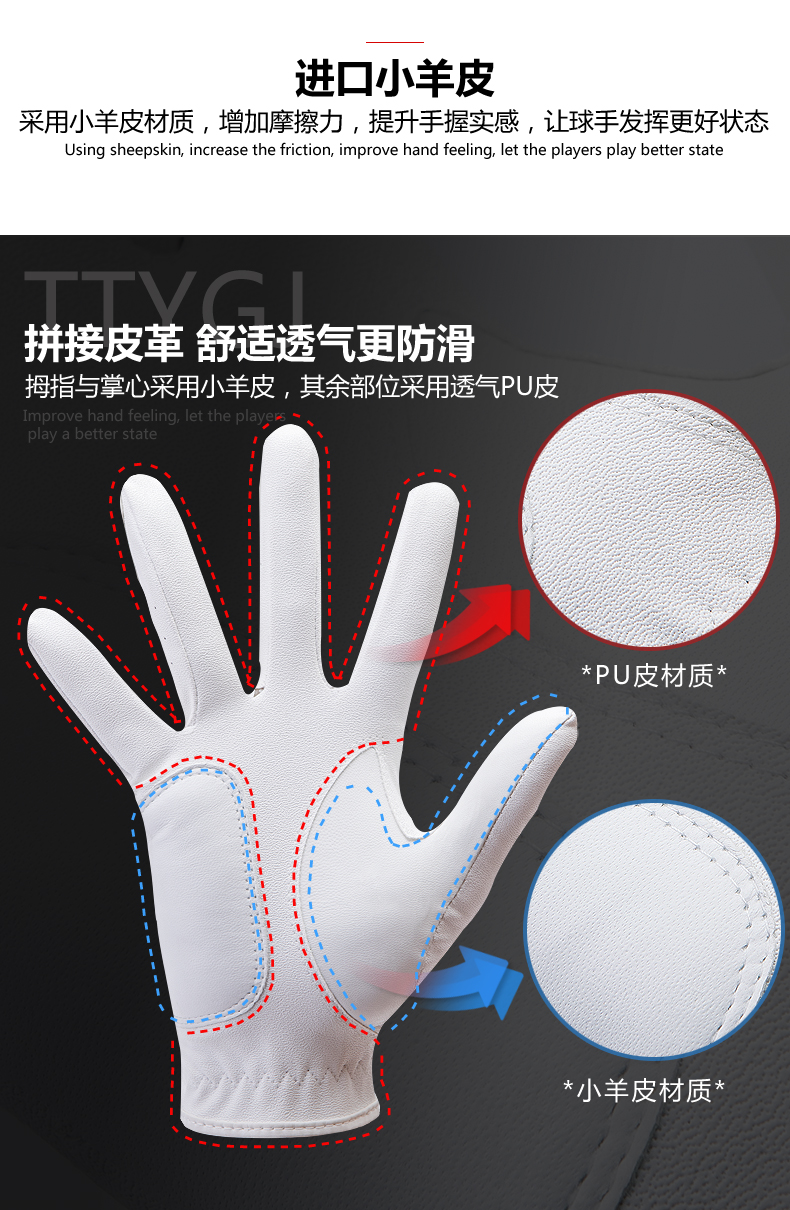 2衹高爾夫球手套男士真皮小羊皮golf手套 魔術貼防滑單衹雙手