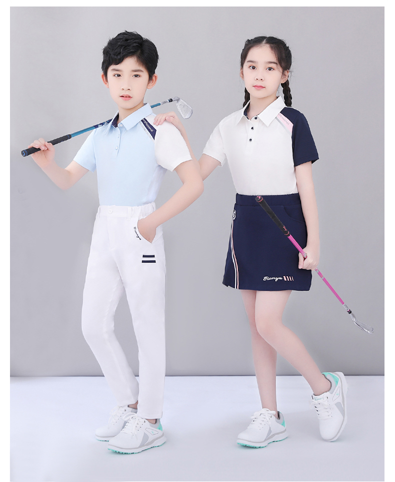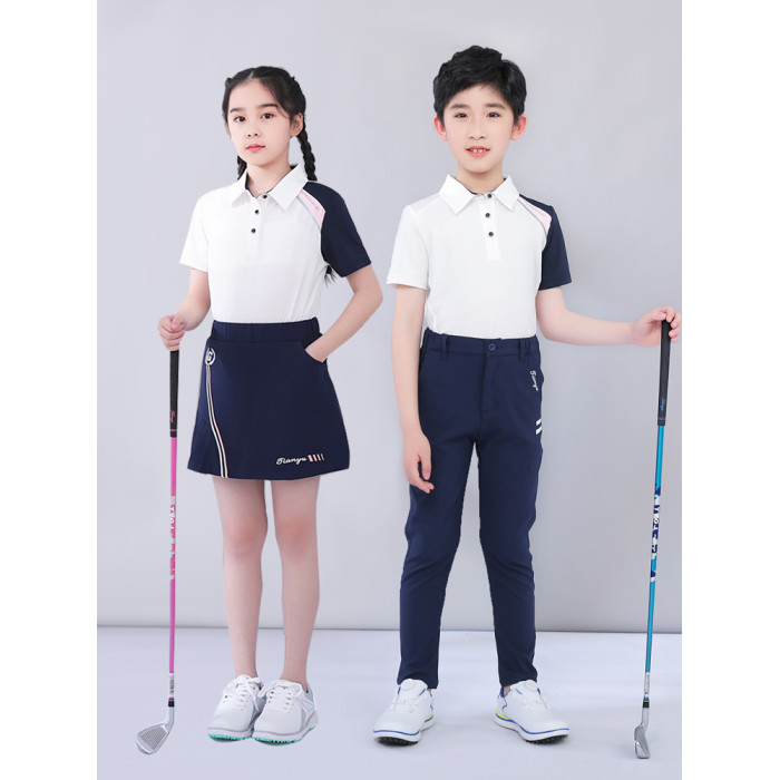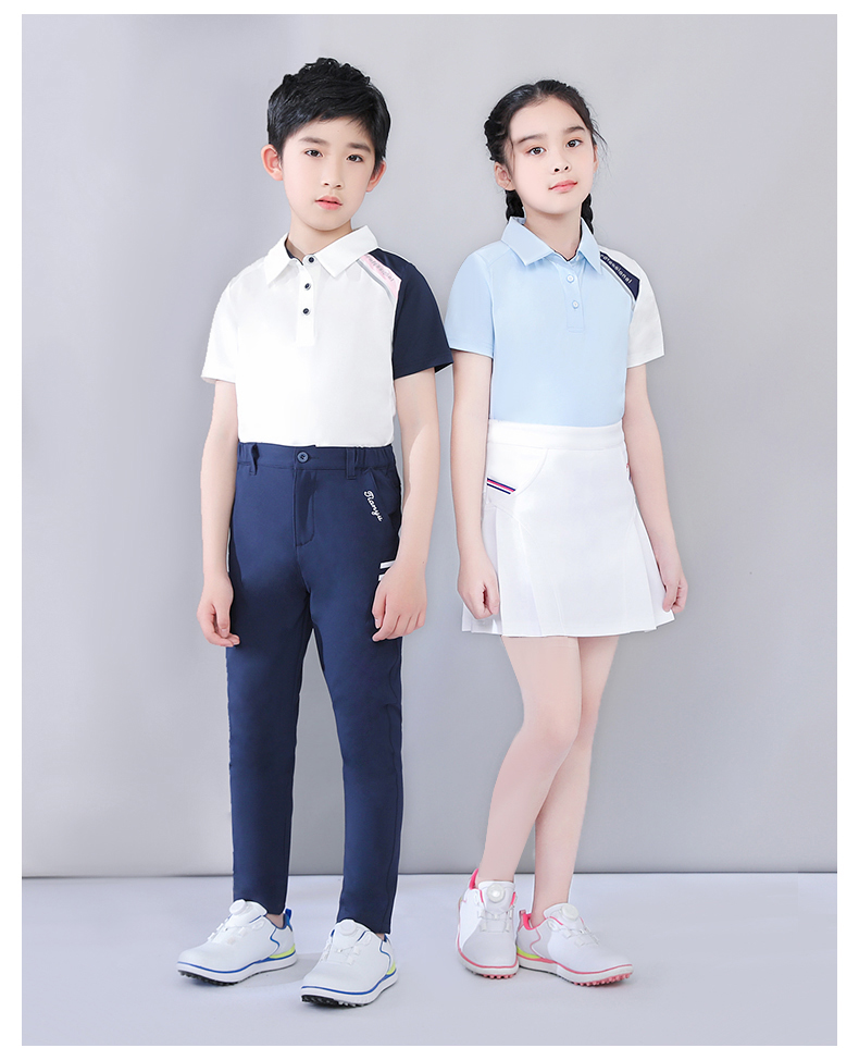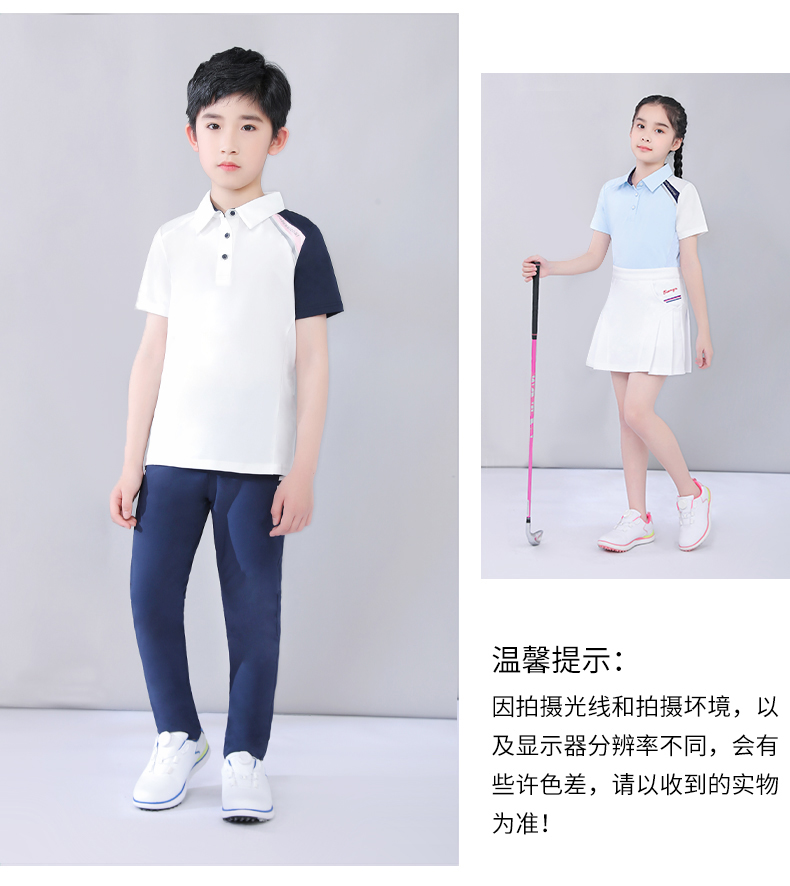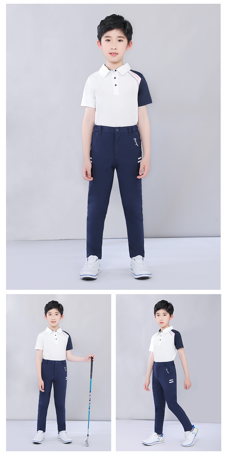 夏季高爾夫服裝 兒童短袖T恤POLO衫 中大童速乾翻領運動球服上衣