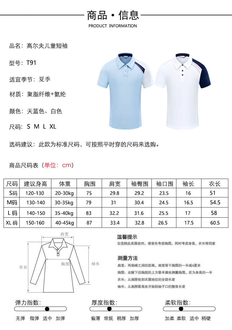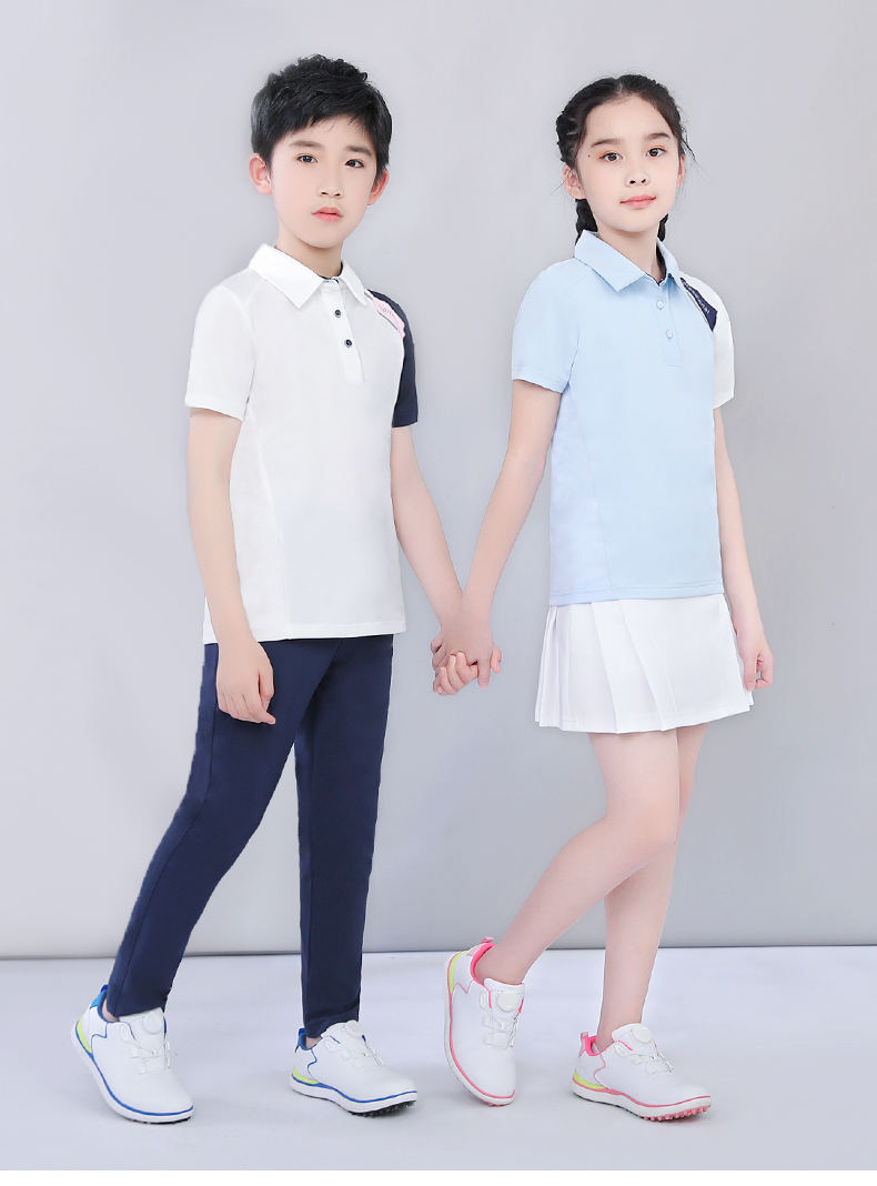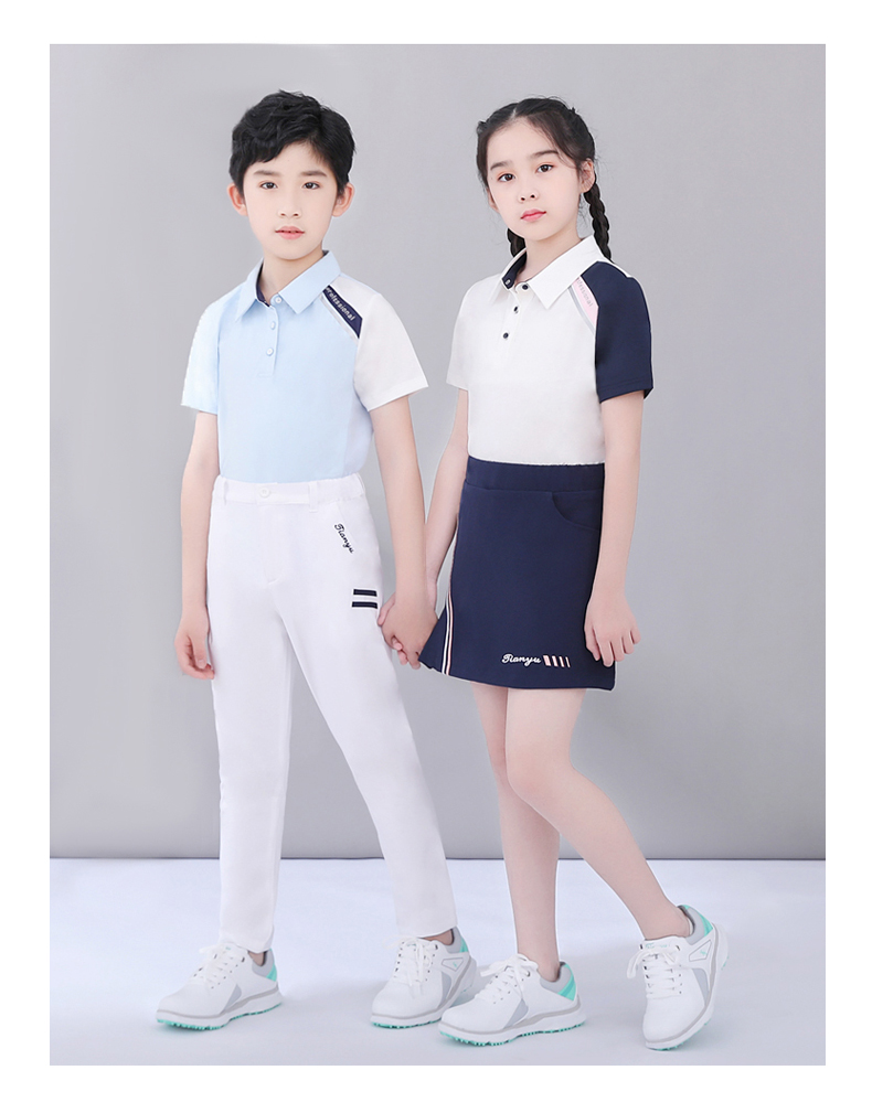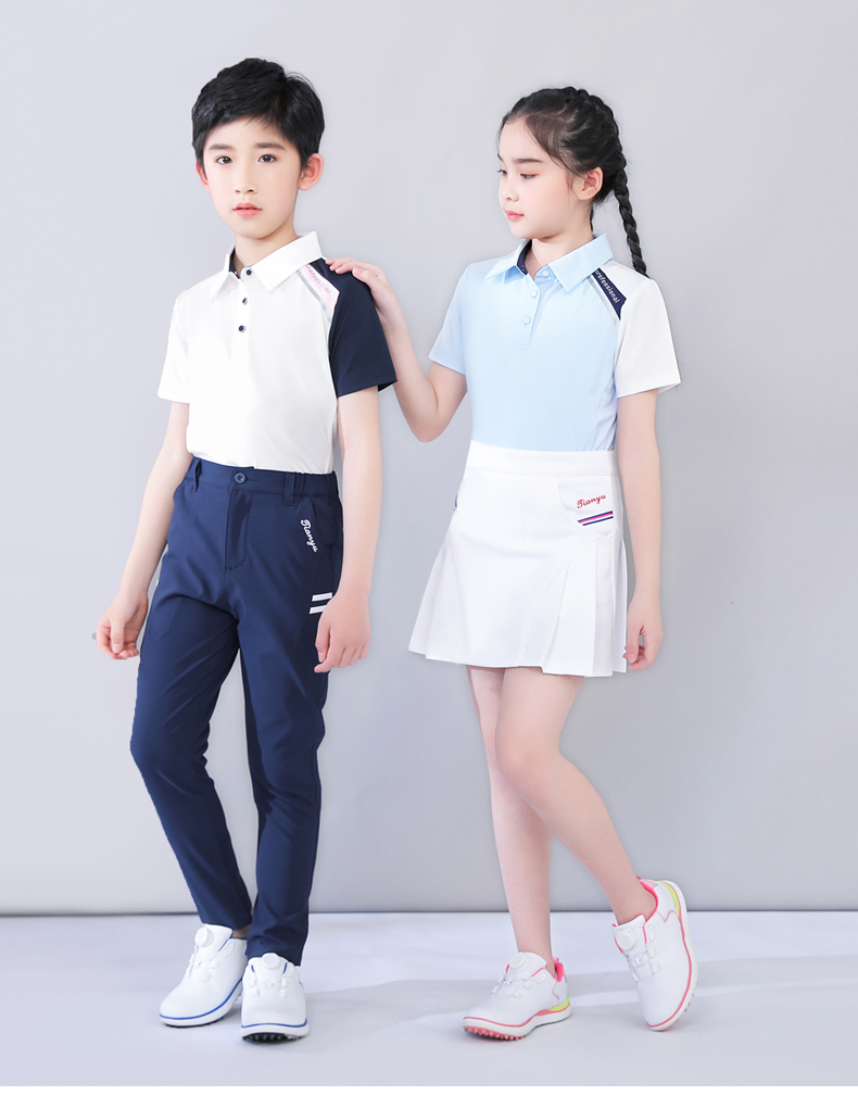 夏季高爾夫服裝 兒童短袖T恤POLO衫 中大童速乾翻領運動球服上衣