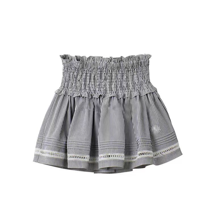 特價清韓系小衆高爾夫女士服裝時尚百搭條紋收褶上衣顯瘦高腰短裙