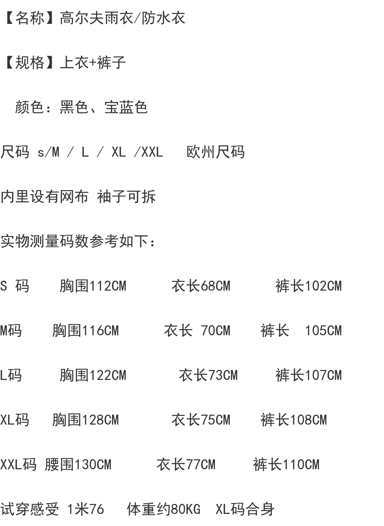 高爾夫球雨衣雨褲可拆袖含帽子 兩件套男士雨衣套裝GOLF戶外雨具