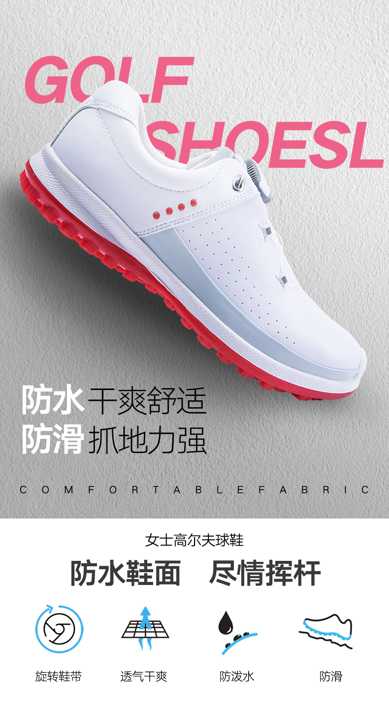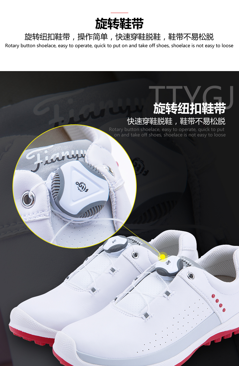 高爾夫球鞋女款防水鞋子旋釦鞋帶防滑底固定釘白色透氣運動鞋子