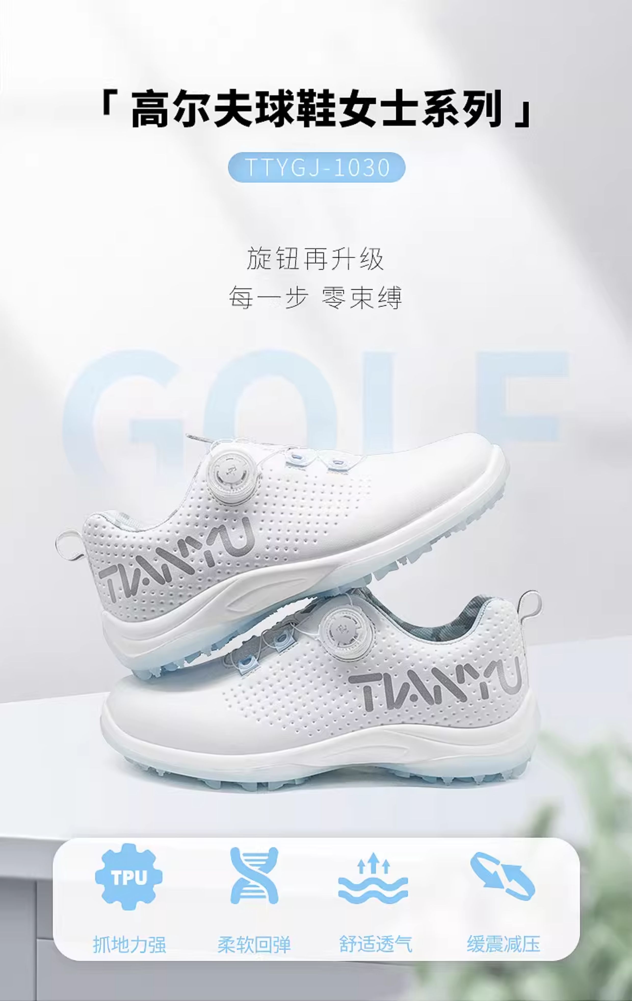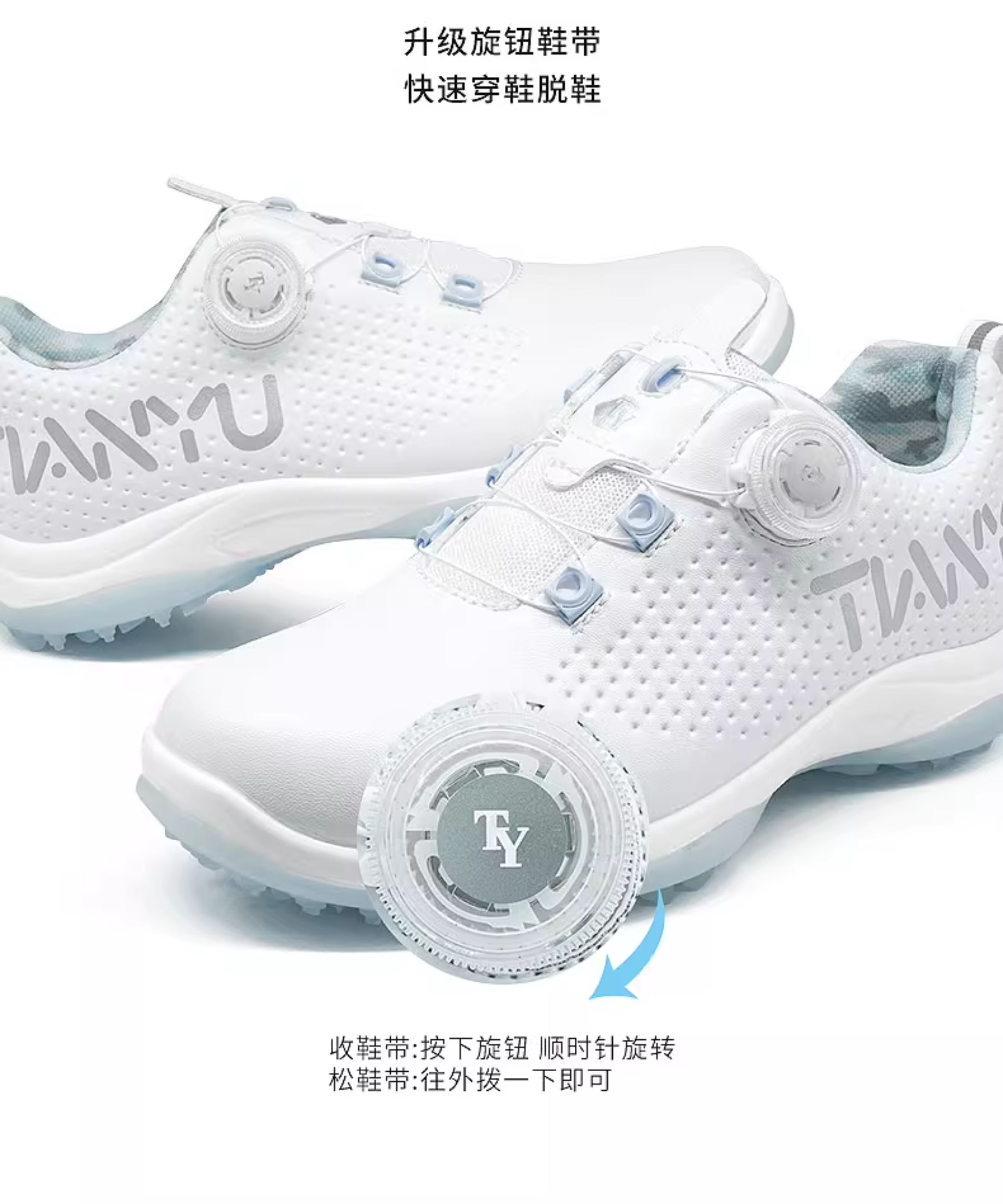高爾夫女鞋旋鈕松緊鞋帶百搭時尚防水防滑休閒運動鞋golf輕便球鞋