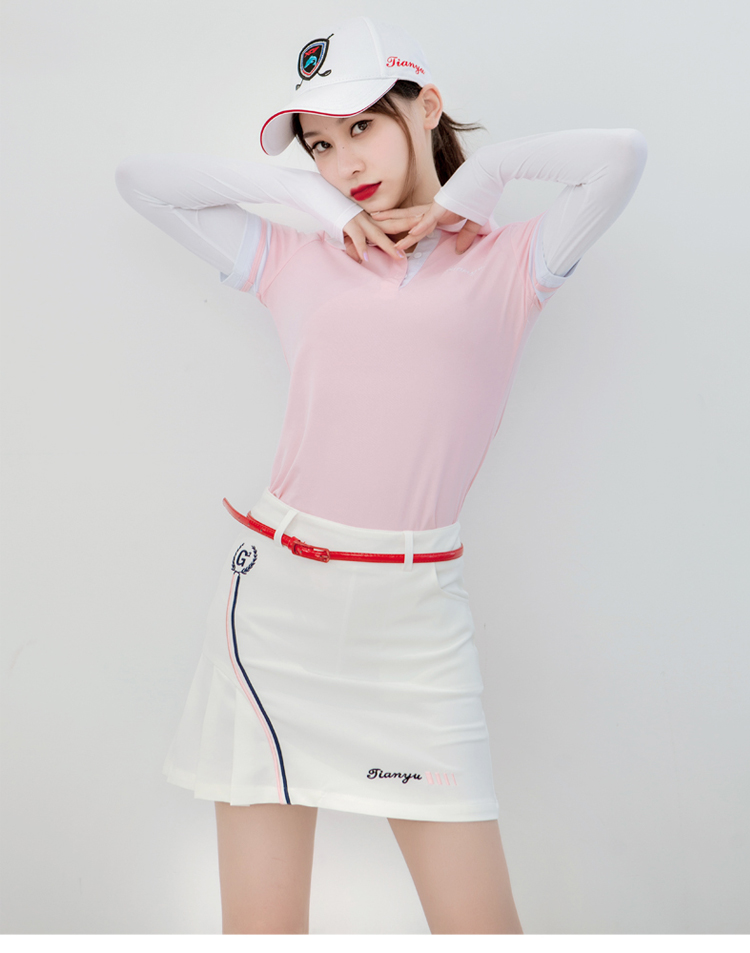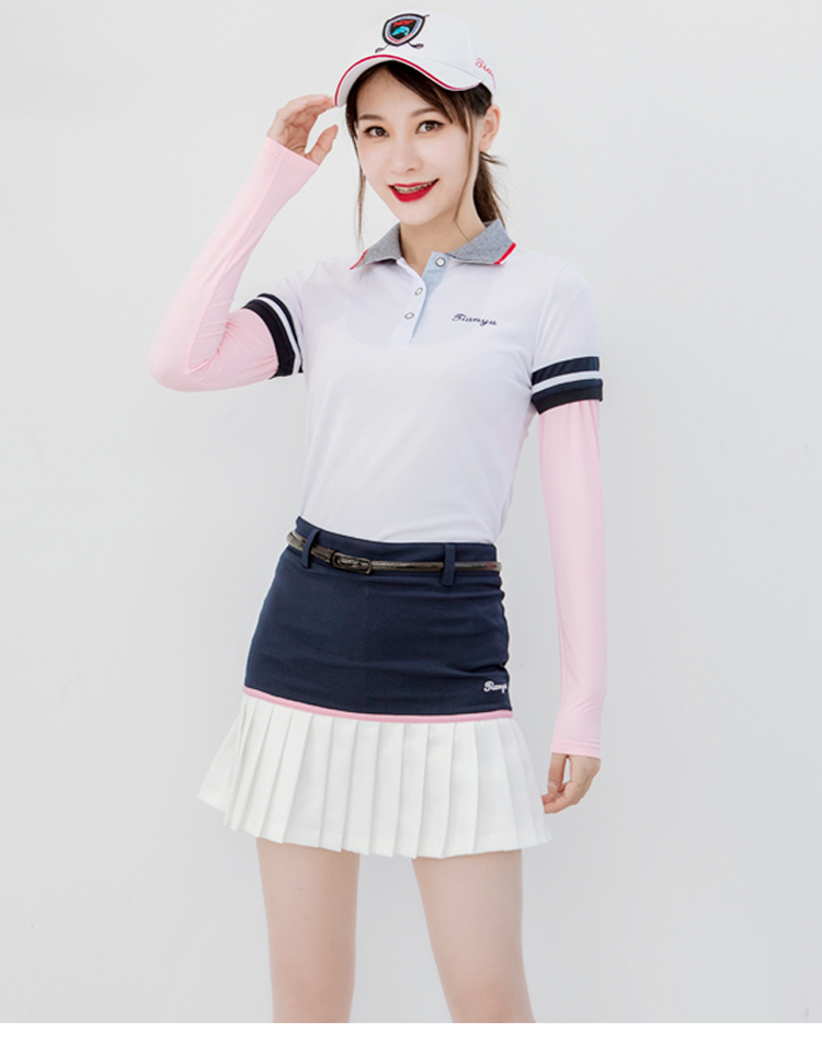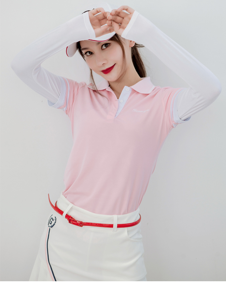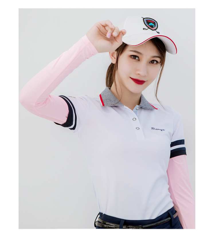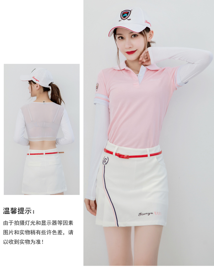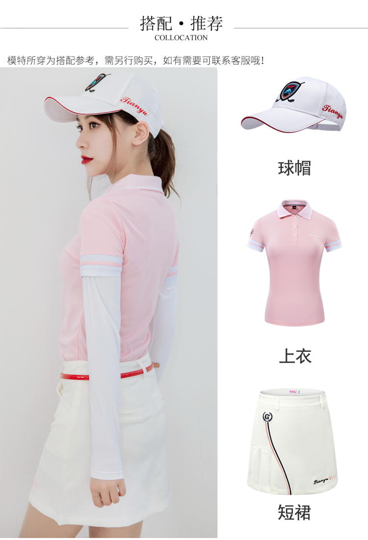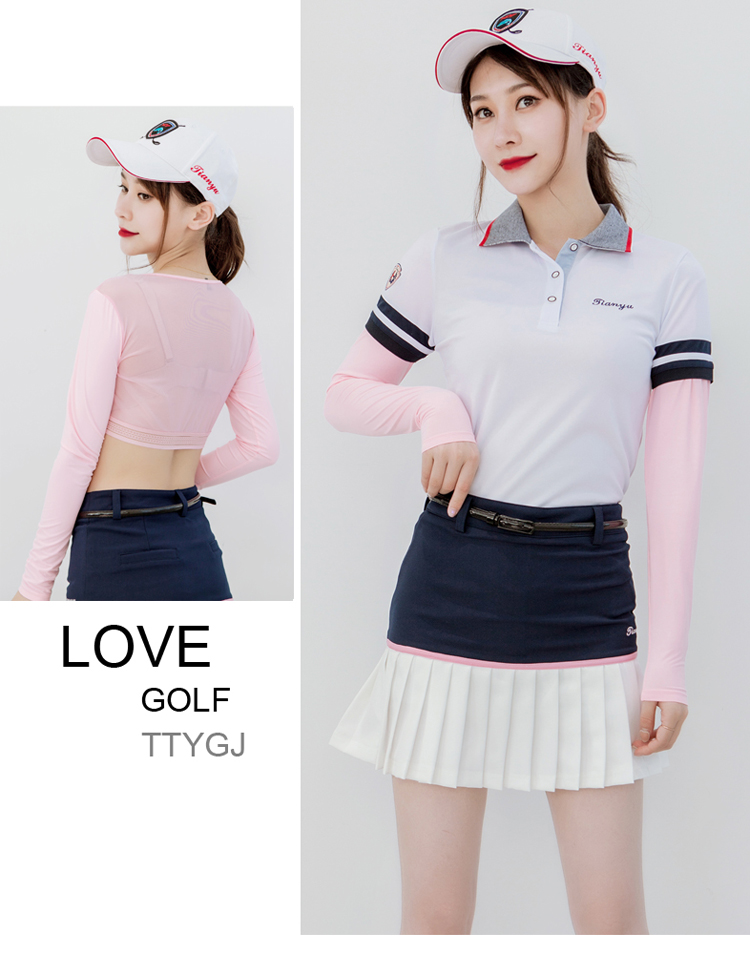新款高爾夫服裝 夏季女士冰絲防曬衣 內搭網紗披肩袖套 粉白色