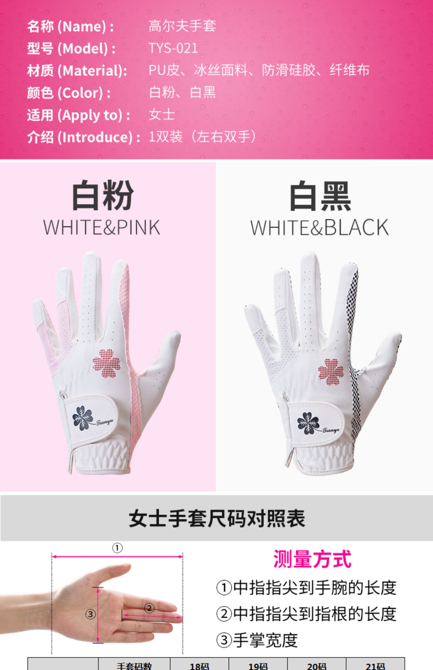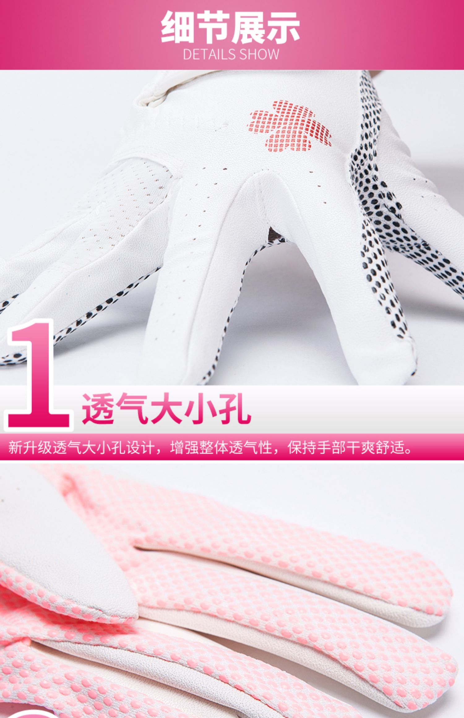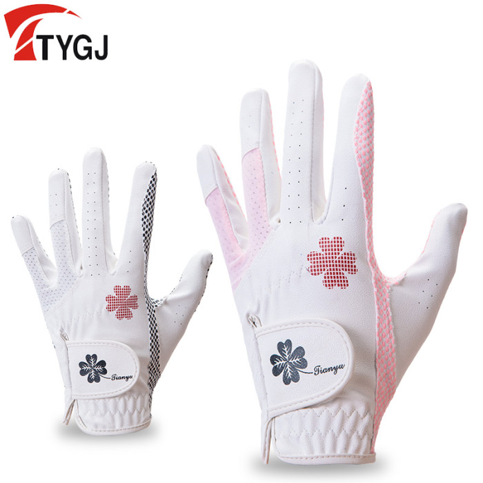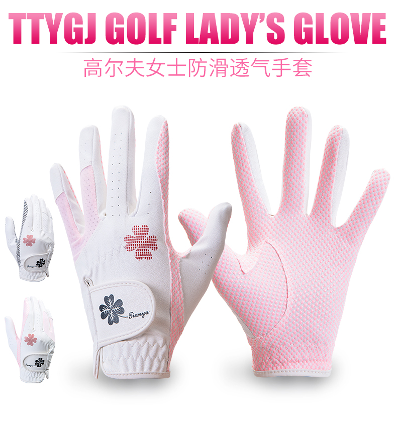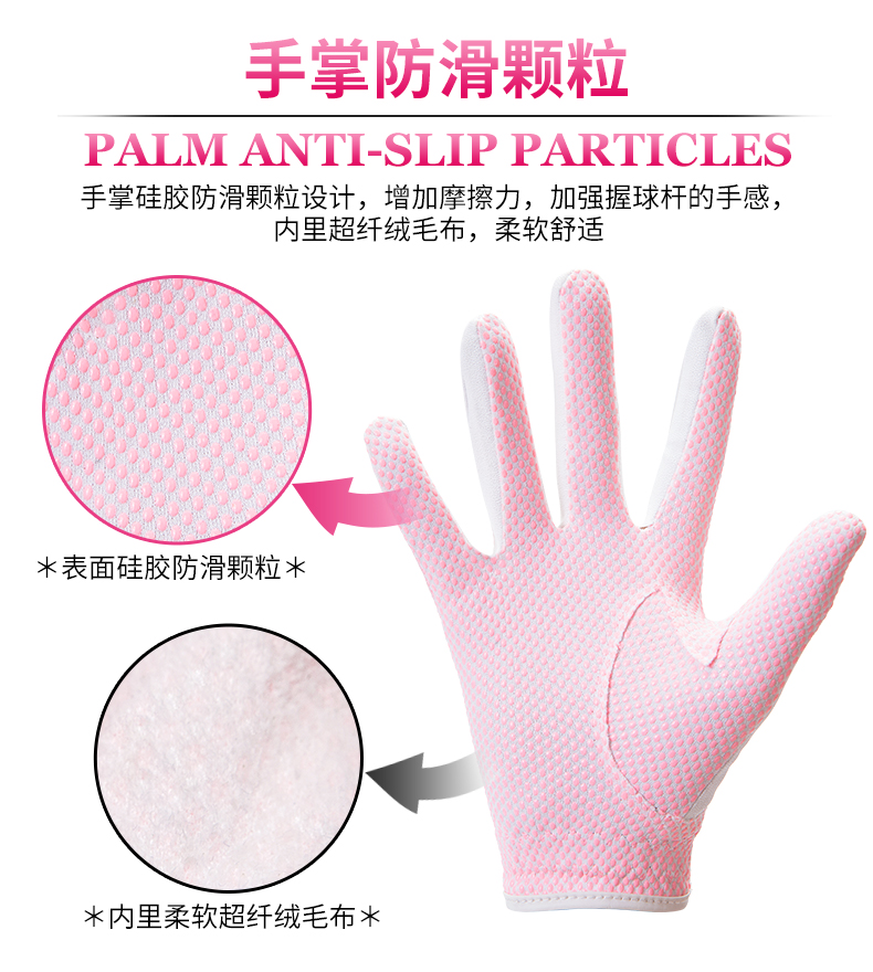 2雙 高爾夫球手套 女士 PU皮革矽膠防滑顆粒左右雙手透氣手套