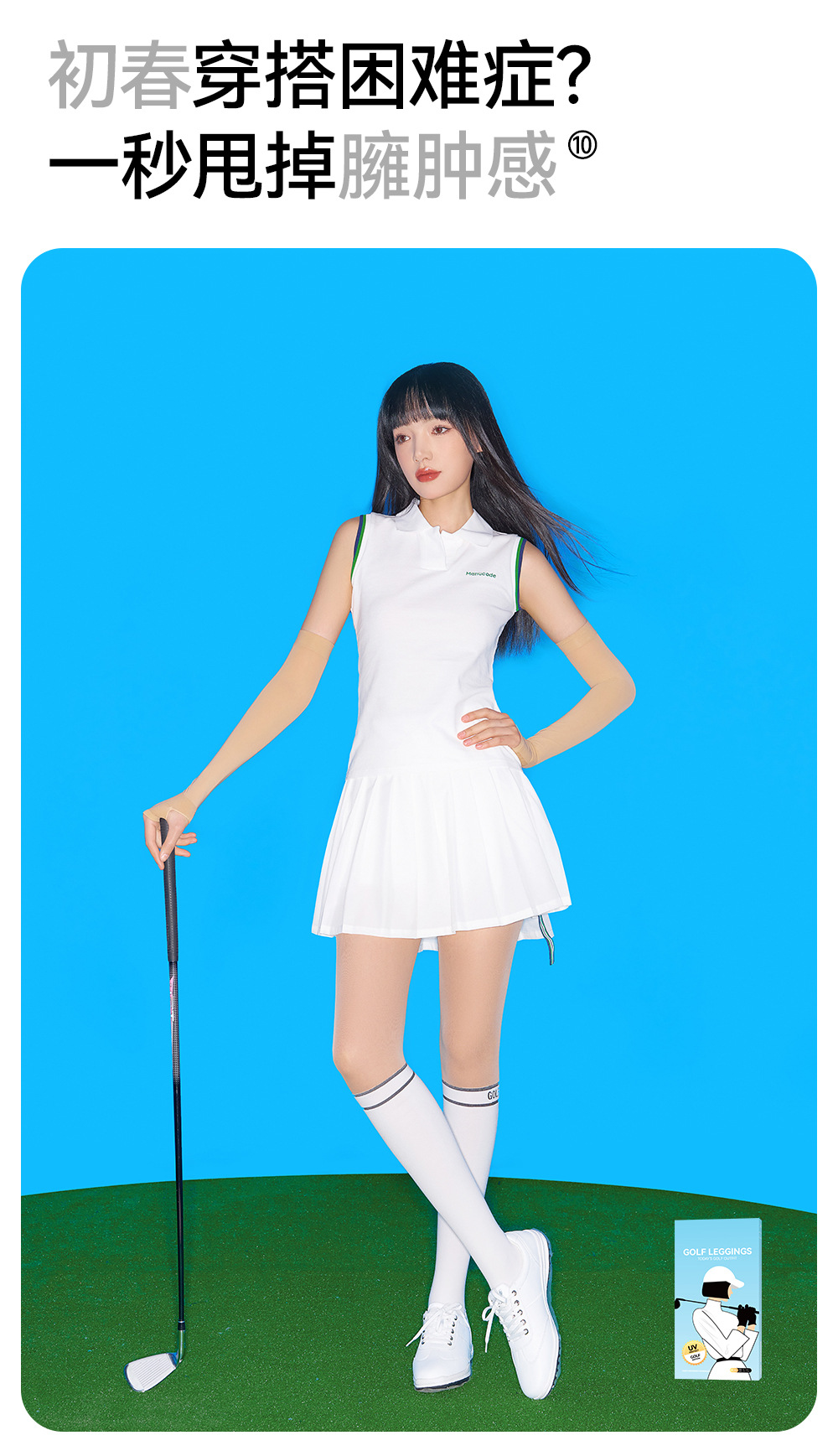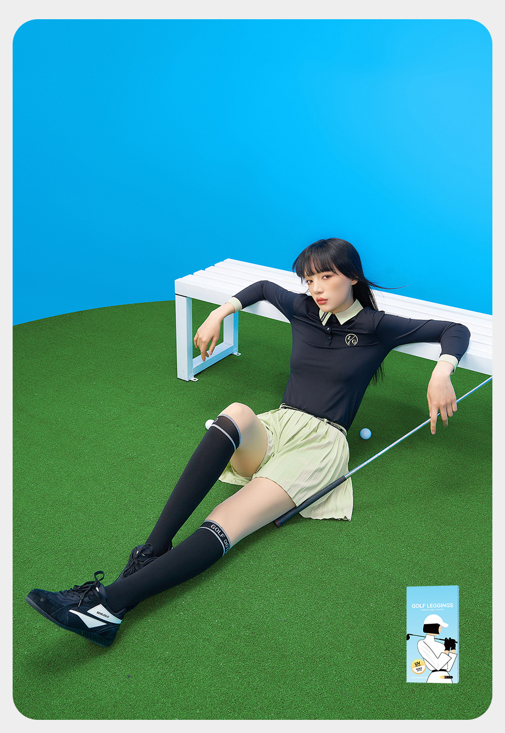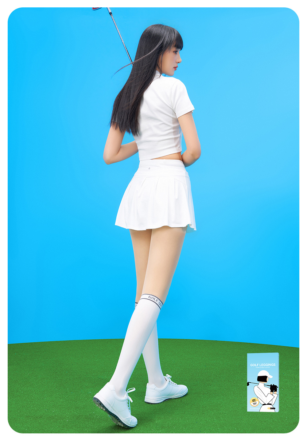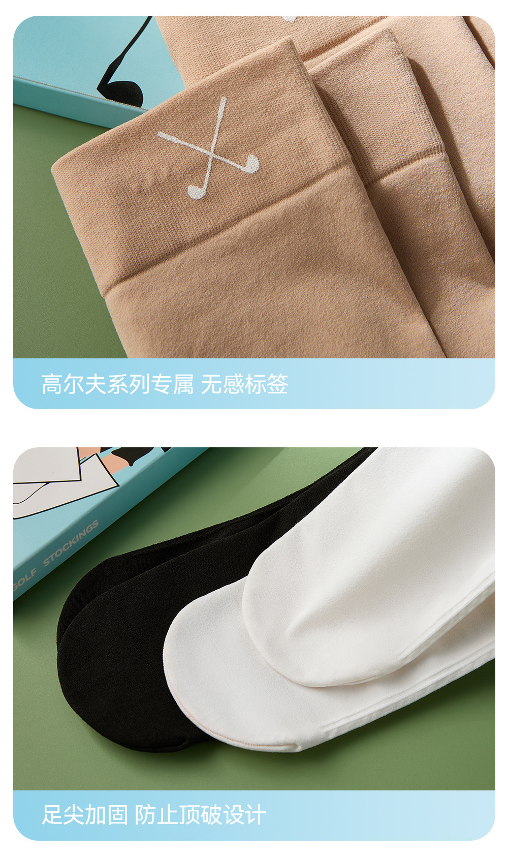 高爾夫絲襪女士連體襪褲防曬拼接白色條紋小腿golf彈力運動女襪子