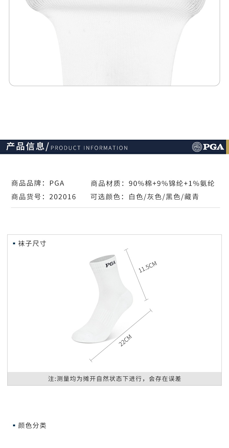 美國PGA 春夏新款 高爾夫男士襪子 加厚毛巾底 防滑高彈中筒球襪
